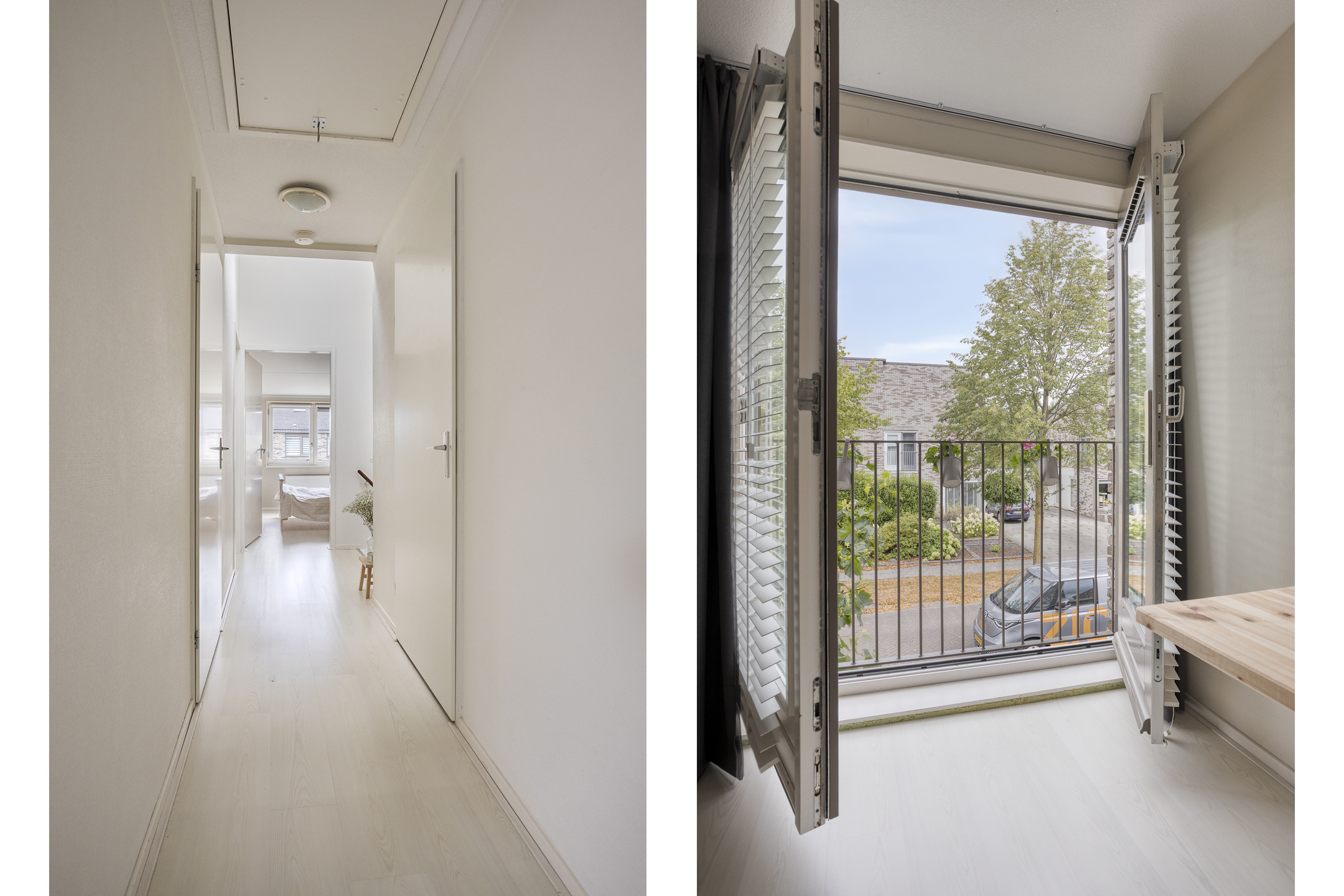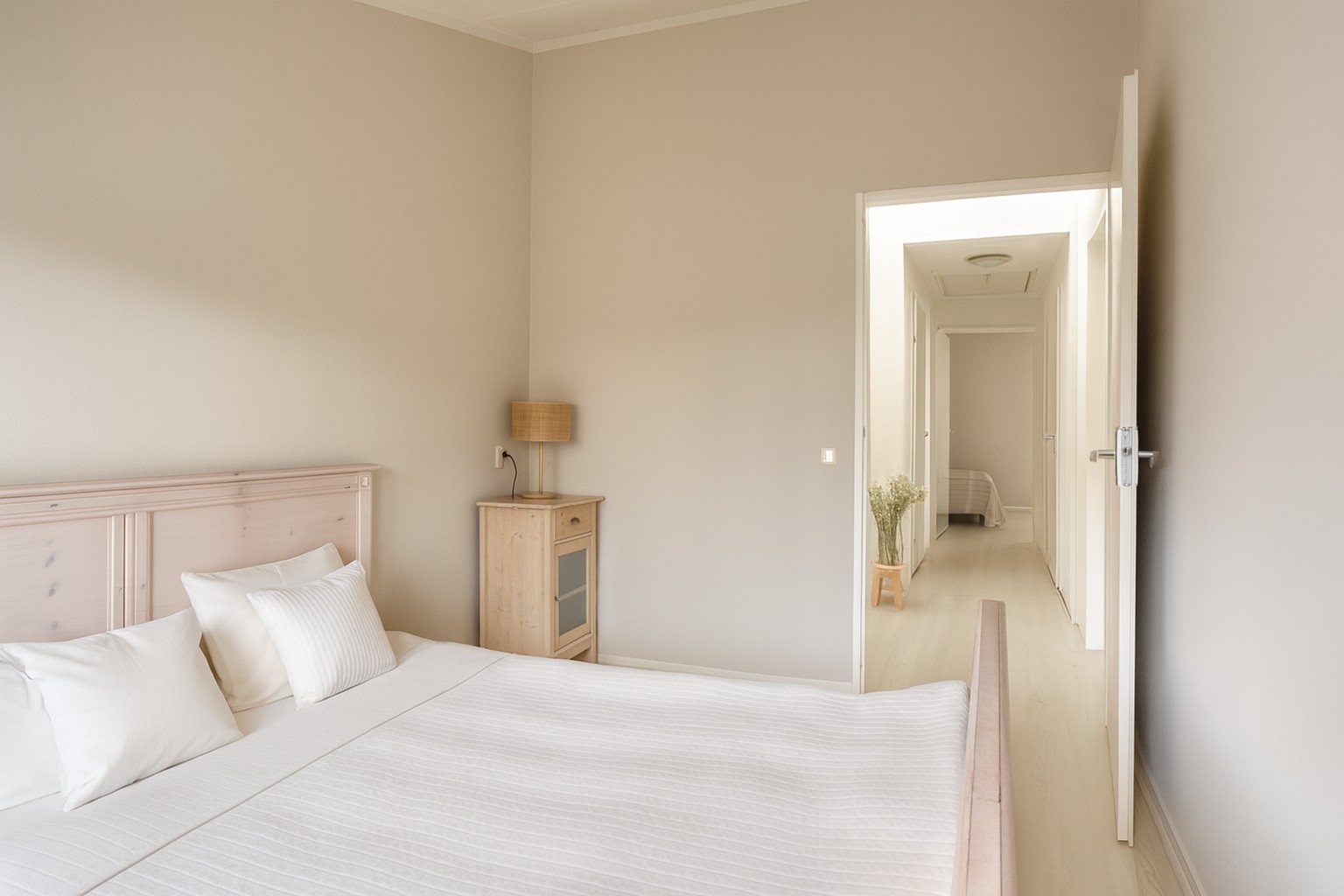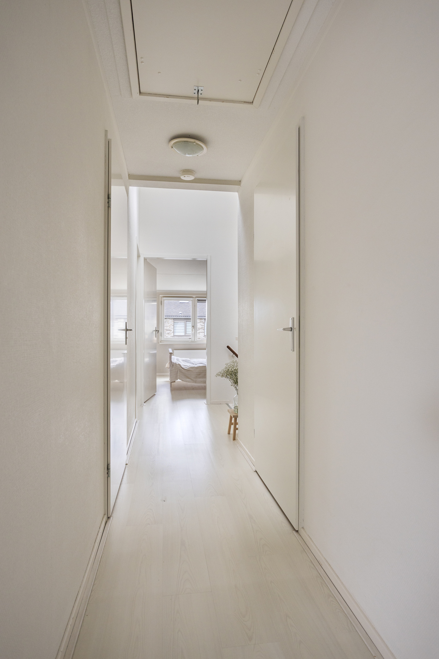 Overloop met toegang tot drie goed bemeten slaapkamers (waarvan 1 met Frans balkon) en de badkamer. De badkamer is netjes en voorzien van een douche, wastafel en tweede toilet.