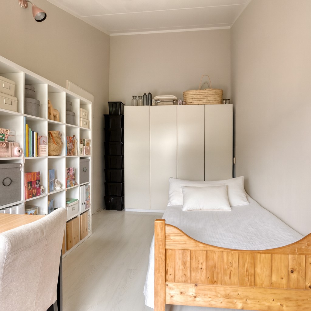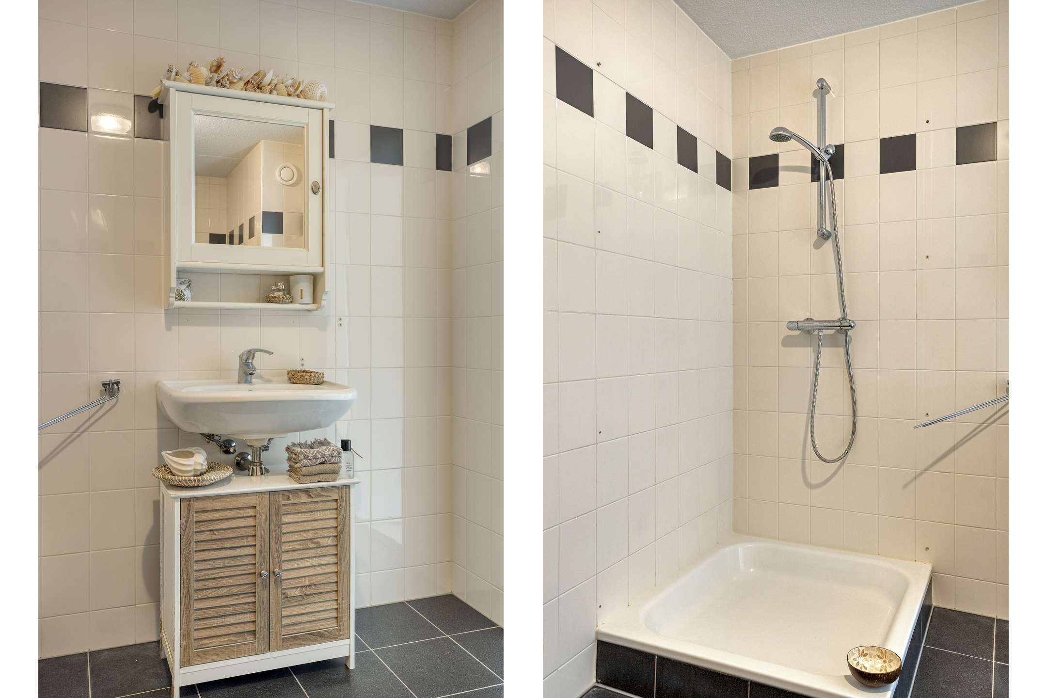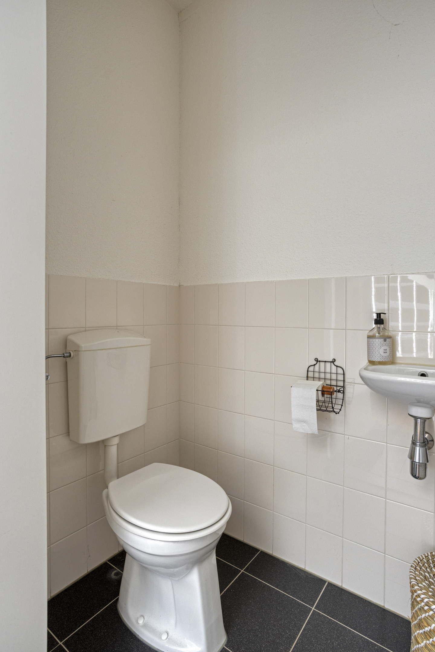 Overloop met toegang tot drie goed bemeten slaapkamers (waarvan 1 met Frans balkon) en de badkamer. De badkamer is netjes en voorzien van een douche, wastafel en tweede toilet.