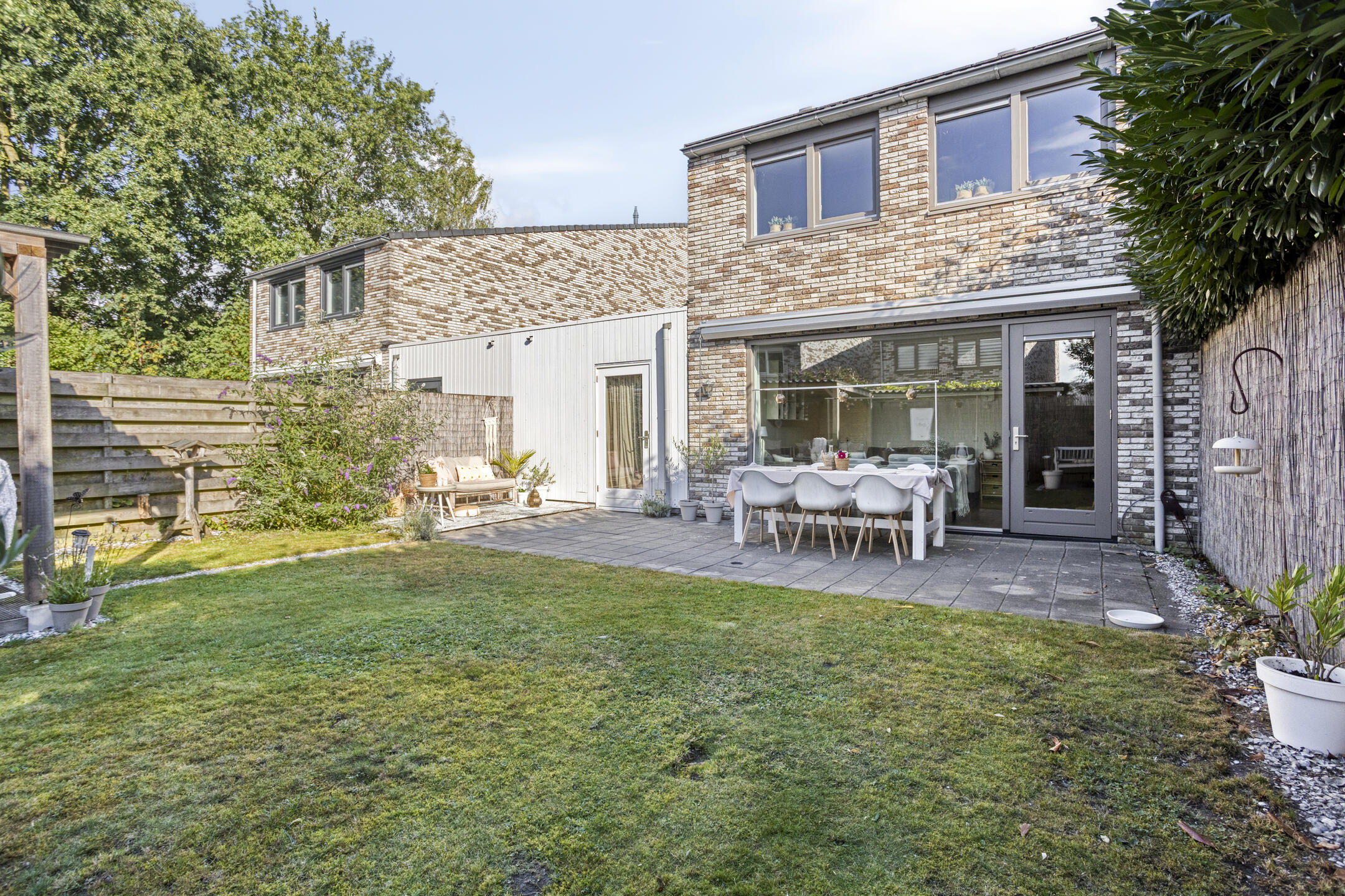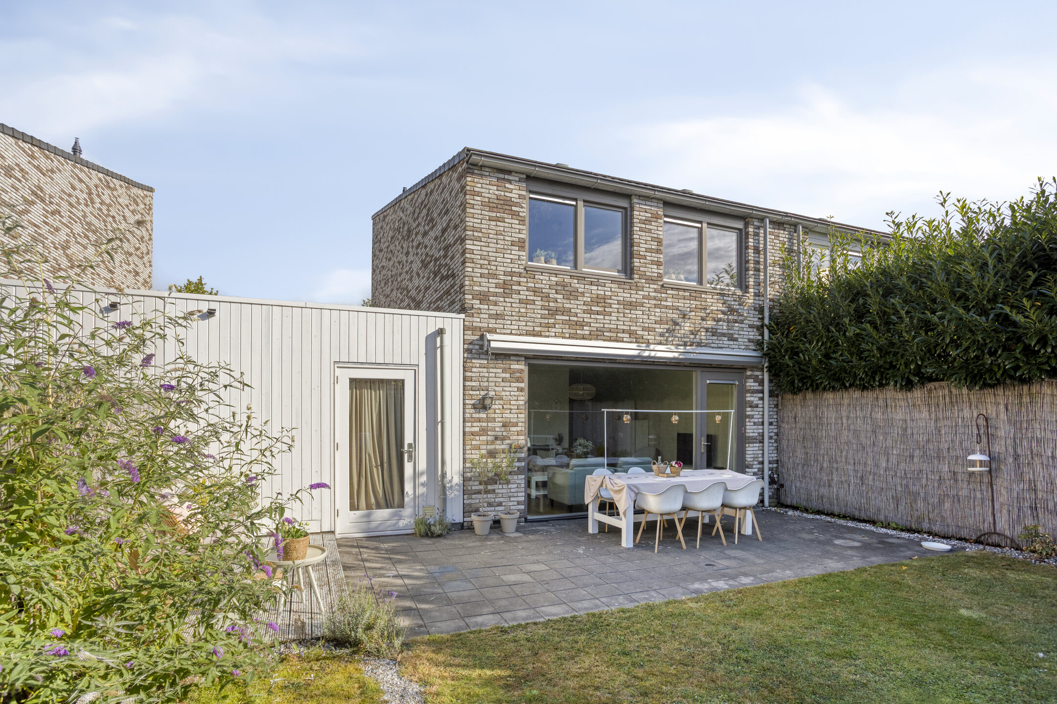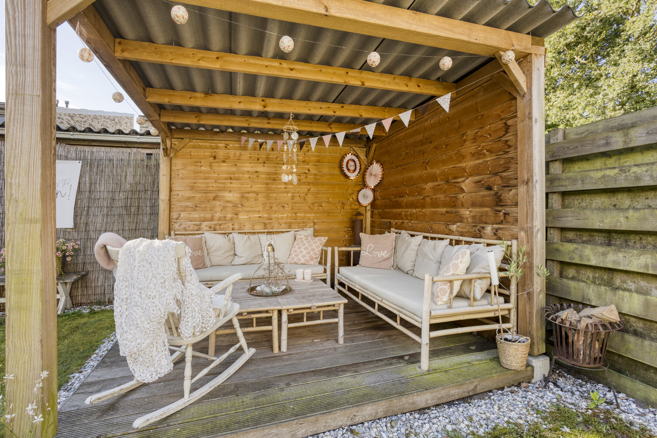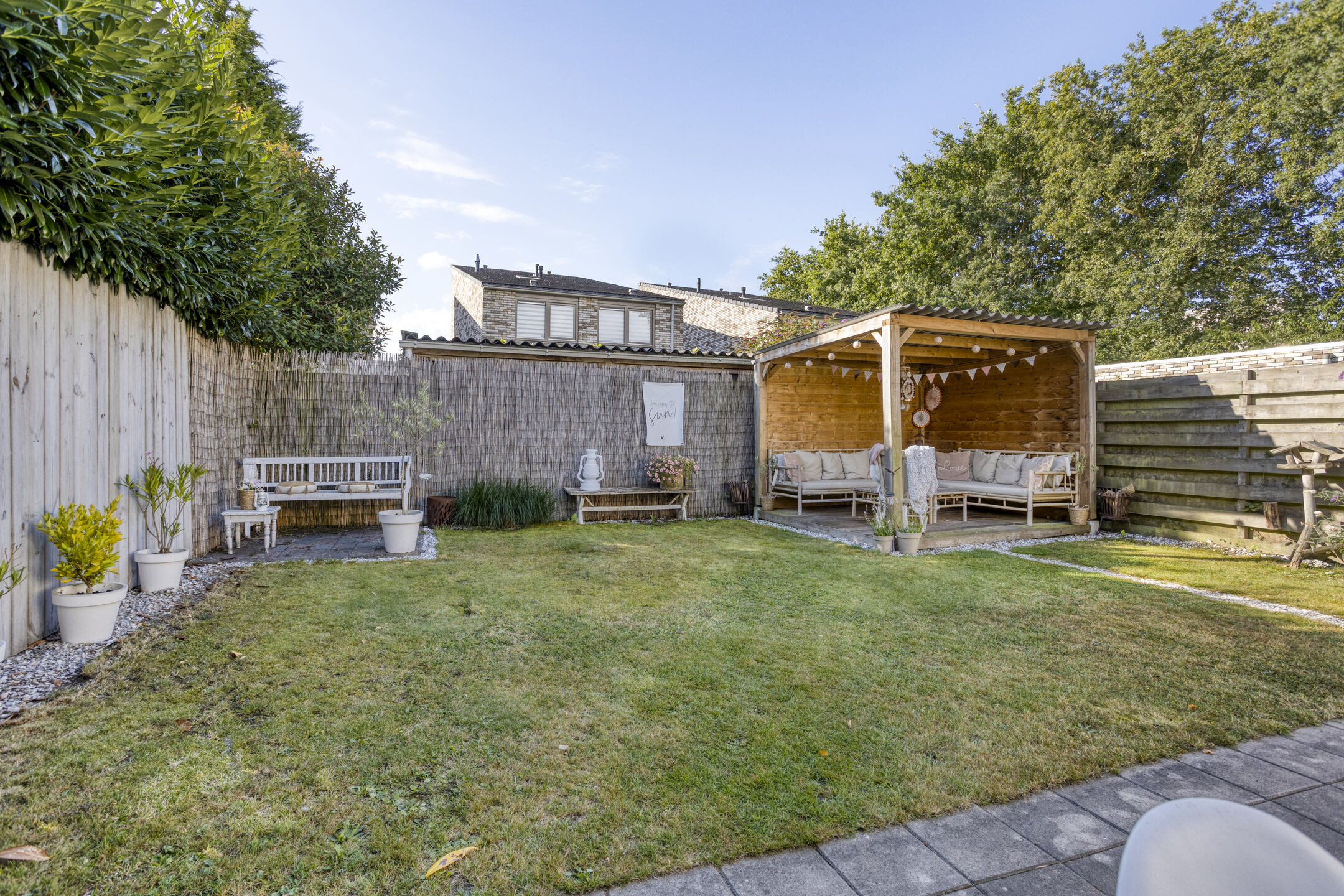 De achtertuin is onderhoudsvriendelijk aangelegd, biedt veel privacy en is gelegen op het zuiden – ideaal om te genieten van de middag- en avondzon. Achter in de tuin staat een vrijstaande houten overkapping, en de tuin is eveneens via de garage te bereiken.