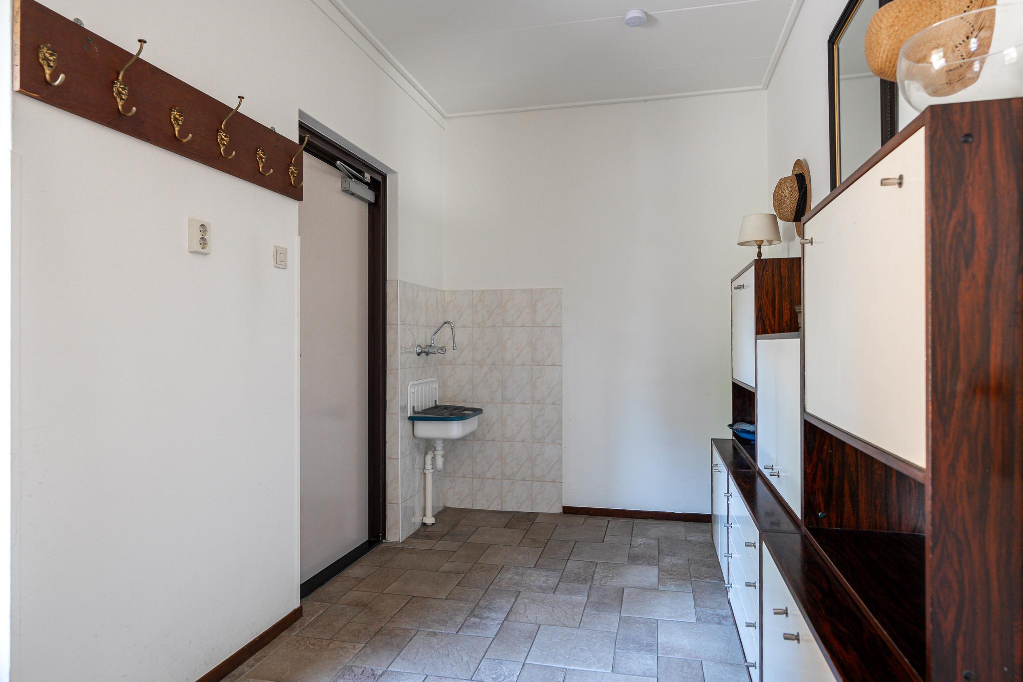 Begane grond: Entree met overkapping, hal met meterkast, gang naar slaapkamer op begane grond met aansluitend een badkamer voorzien van dubbele wastafel, toilet en luxe douche, woonkamer met schouw, schuifpui naar de tuin, dichte keuken in langsopstelling o.a. voorzien van inductiekookplaat, afzuigkap, vaatwasser en oven, kelder, bijkeuken met toegang tot aangebouwde stenen garage in spouw. De kelder is zeer ruim en heeft een oppervlakte van 105m². Deze is multifunctioneel en voor vele doeleinden geschikt, bijvoorbeeld: gameroom, opslag, hobbyruimte of speelkamer etc.