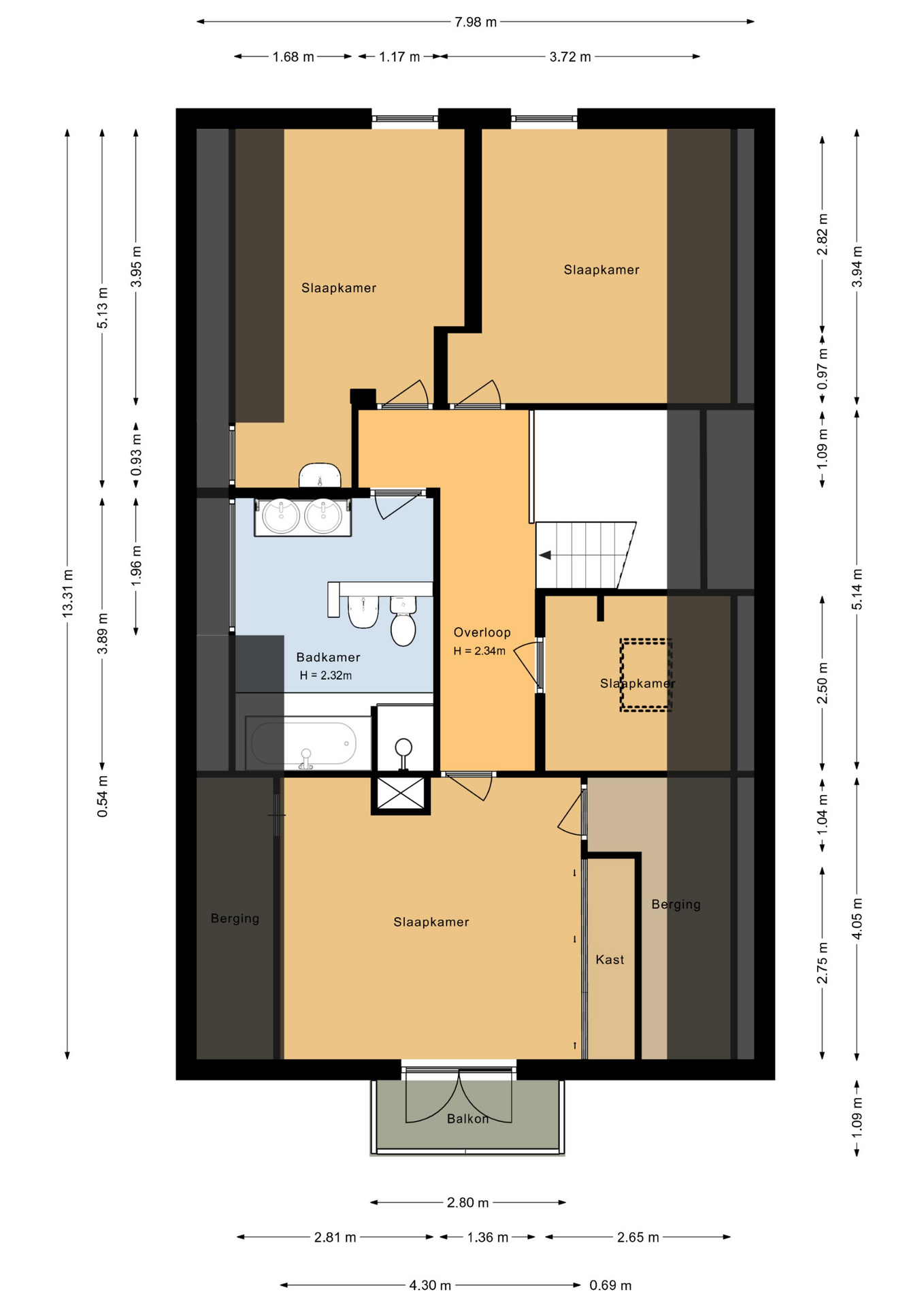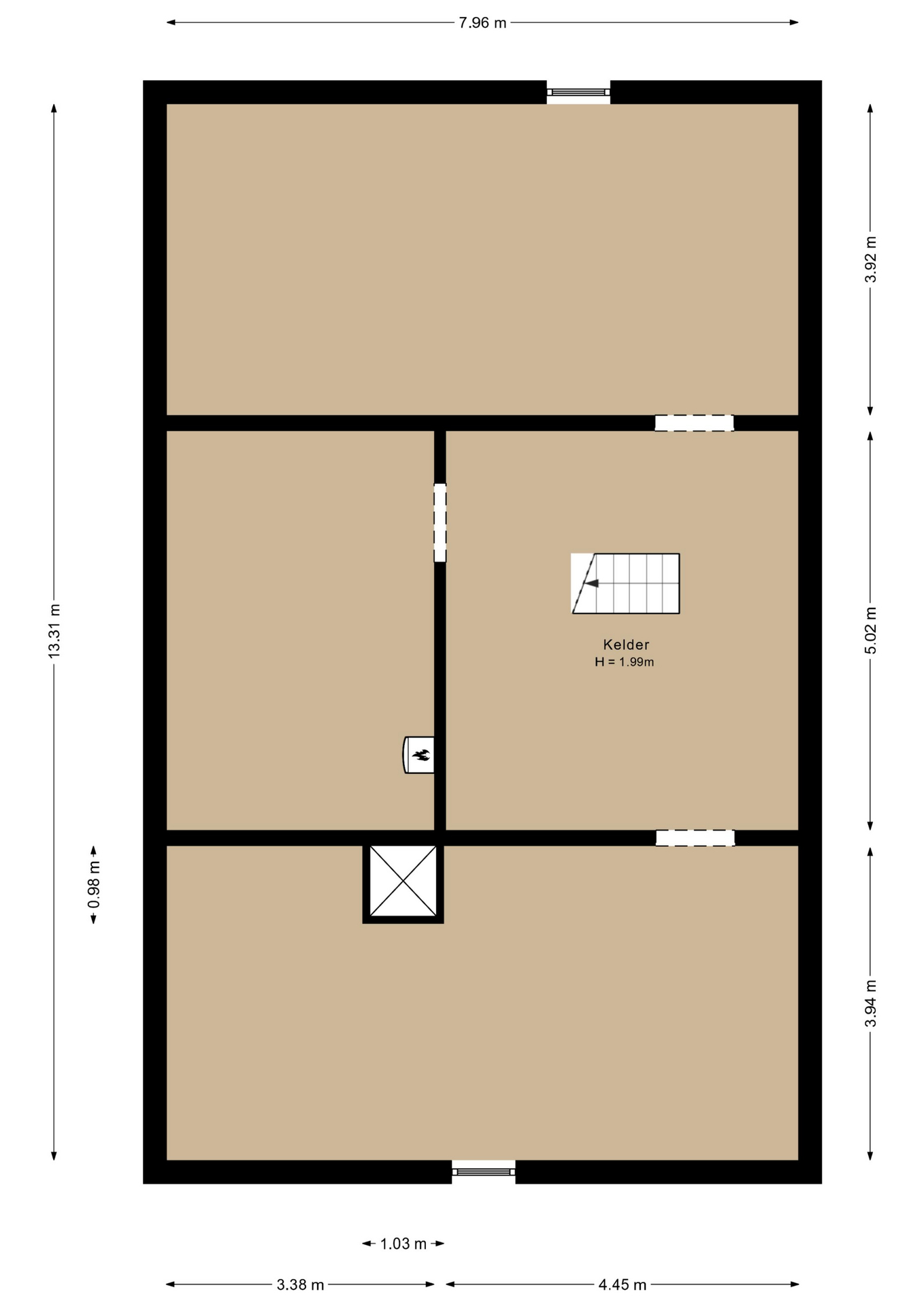 – De woning is volledig onderkelderd (stahoogte)