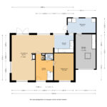 Begane grond: Via de entree komt u in de hal met toegang tot werk-/slaapkamer, het toilet, de meterkast en de trap naar de eerste verdieping. Vanuit de hal loopt u door naar de lichte en ruime woonkamer, met rondom ramen en tuindeur die zorgen voor een prettige lichtinval. Hier is voldoende ruimte voor zowel een gezellig zitgedeelte als een eethoek.
