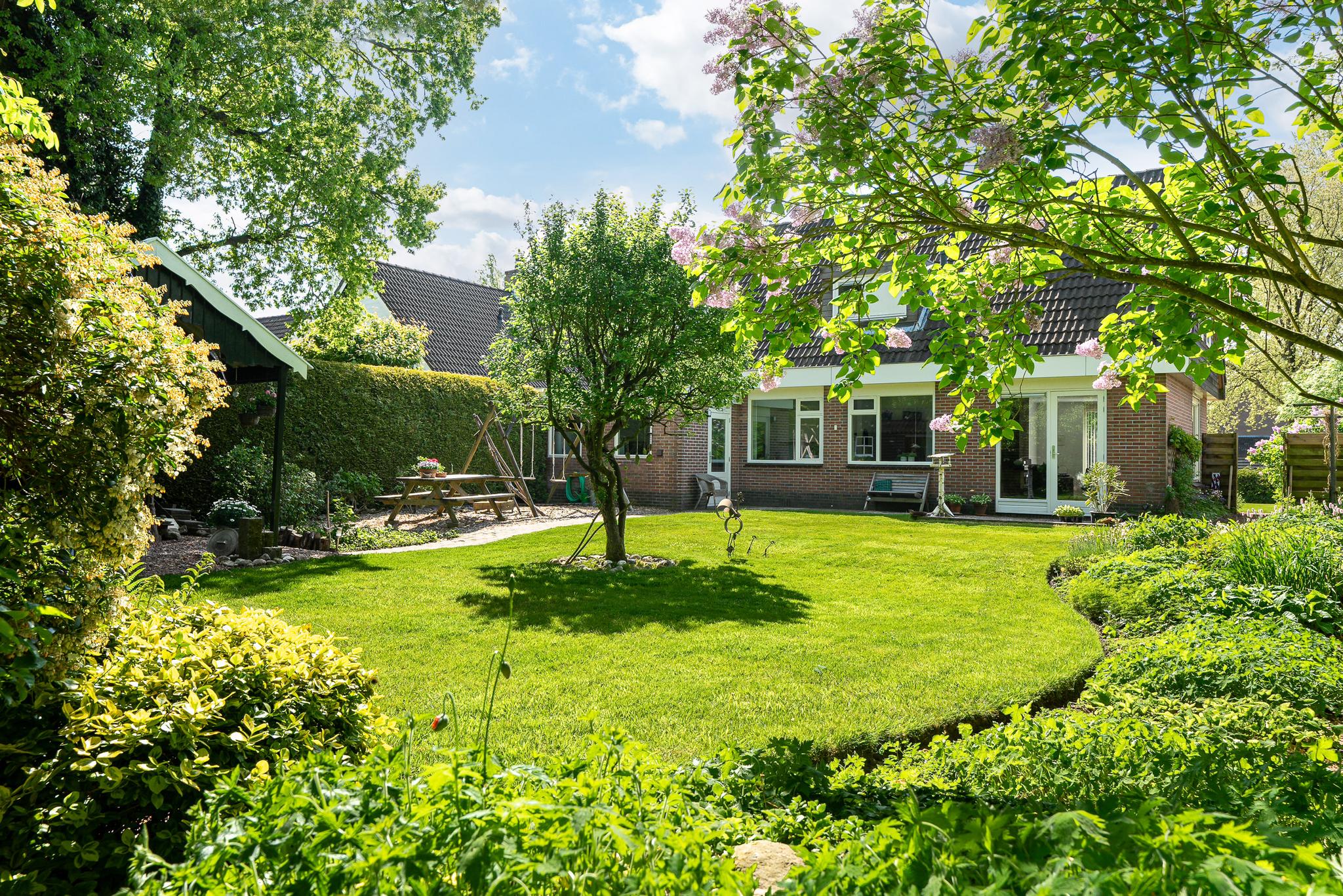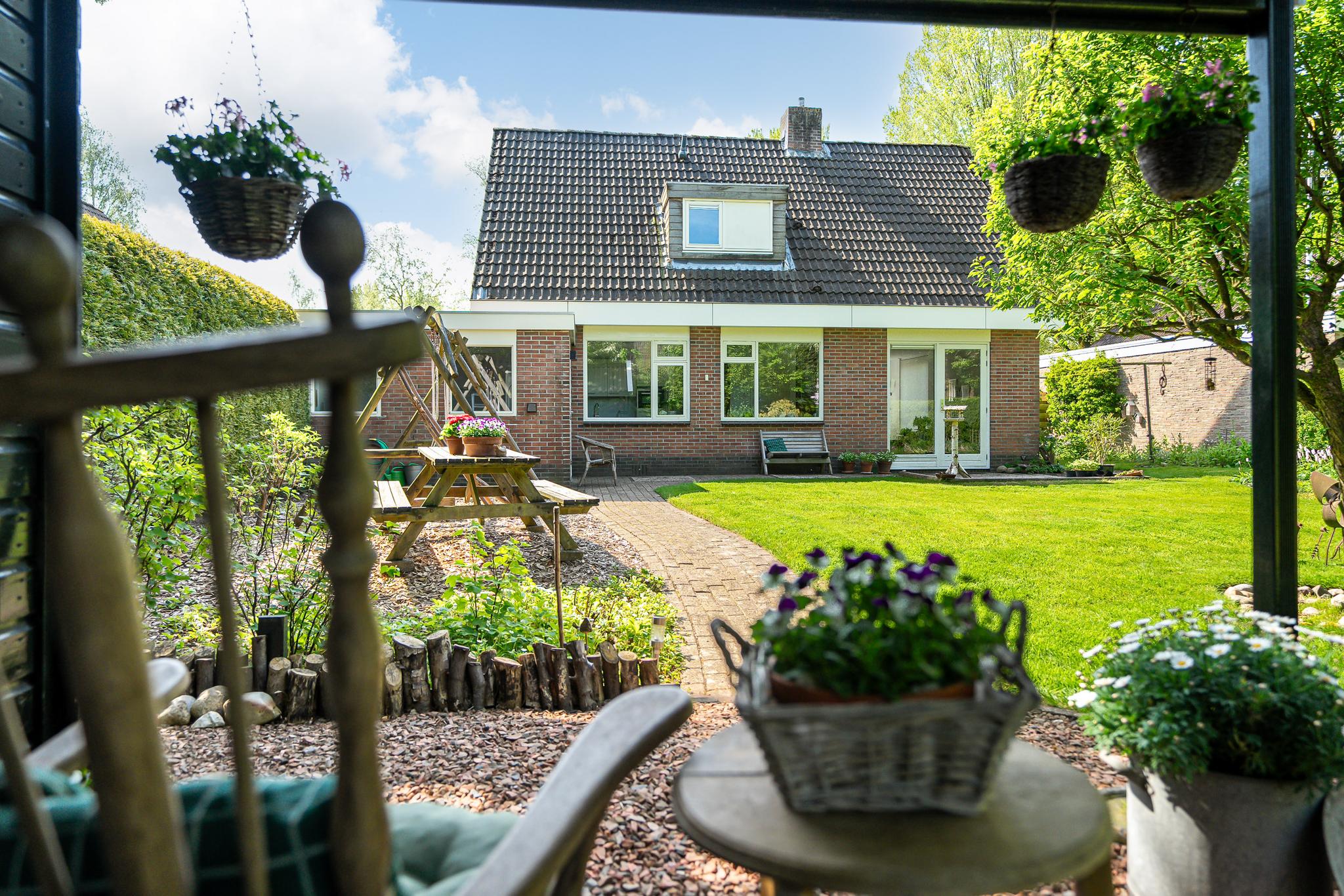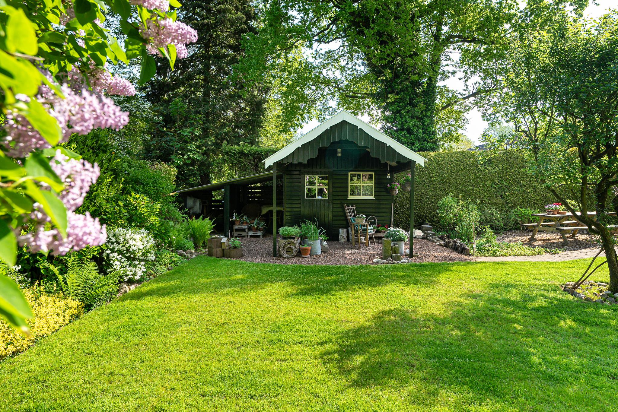 Wat deze woning extra bijzonder maakt, is het ruime perceel van 727 m². De fraai aangelegde achtertuin, gelegen op het noordoosten, biedt door zijn grootte volop zon en privacy. Hier heeft u alle ruimte voor een groot terras, een speelplek voor kinderen of een moestuin. Ook is er een tuinhuis met overkapping. Aan de voorzijde van de woning bevindt zich een ruime oprit met parkeergelegenheid voor meerdere auto’s.