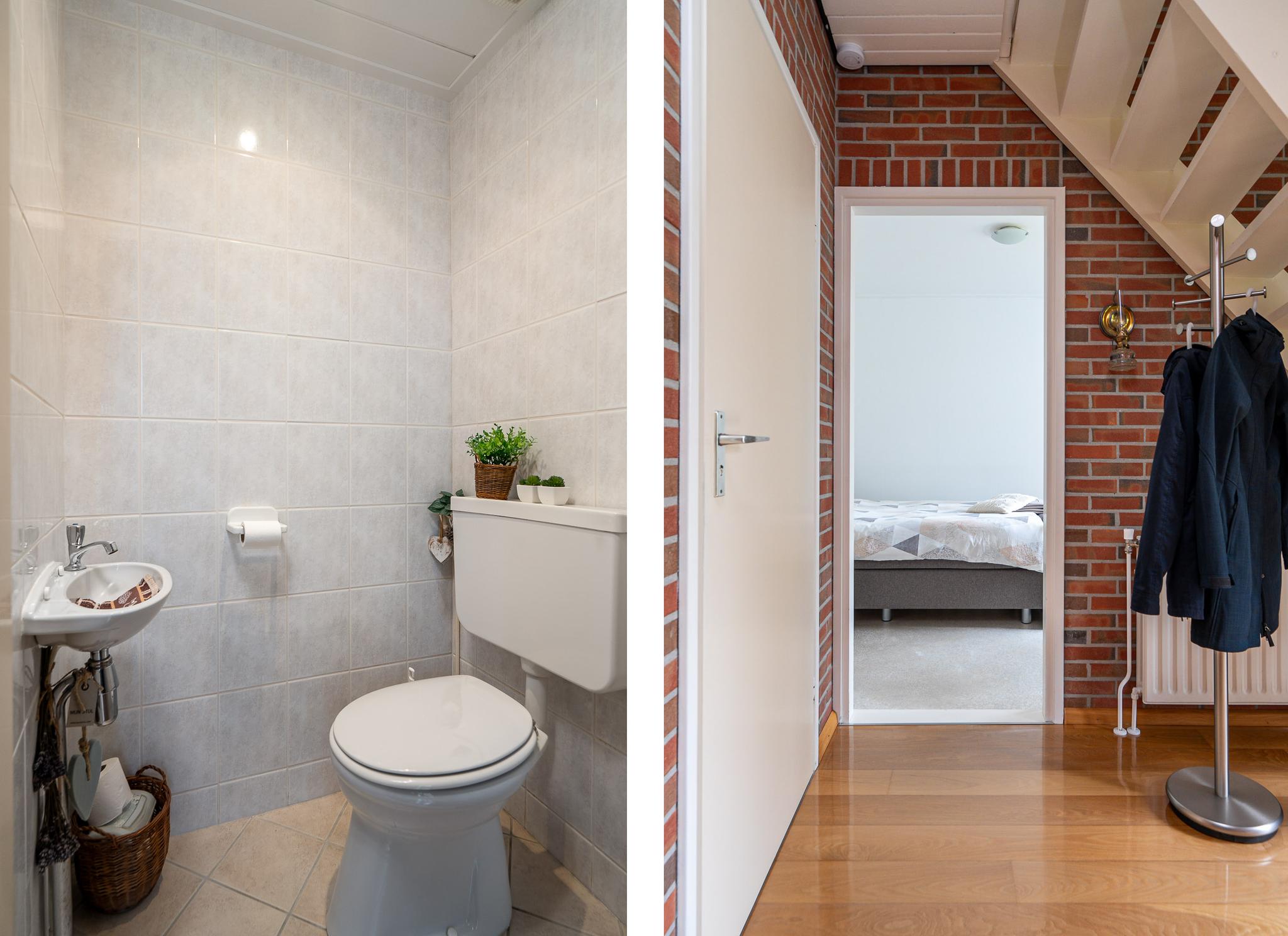 Begane grond: Via de entree komt u in de hal met toegang tot werk-/slaapkamer, het toilet, de meterkast en de trap naar de eerste verdieping. Vanuit de hal loopt u door naar de lichte en ruime woonkamer, met rondom ramen en tuindeur die zorgen voor een prettige lichtinval. Hier is voldoende ruimte voor zowel een gezellig zitgedeelte als een eethoek.