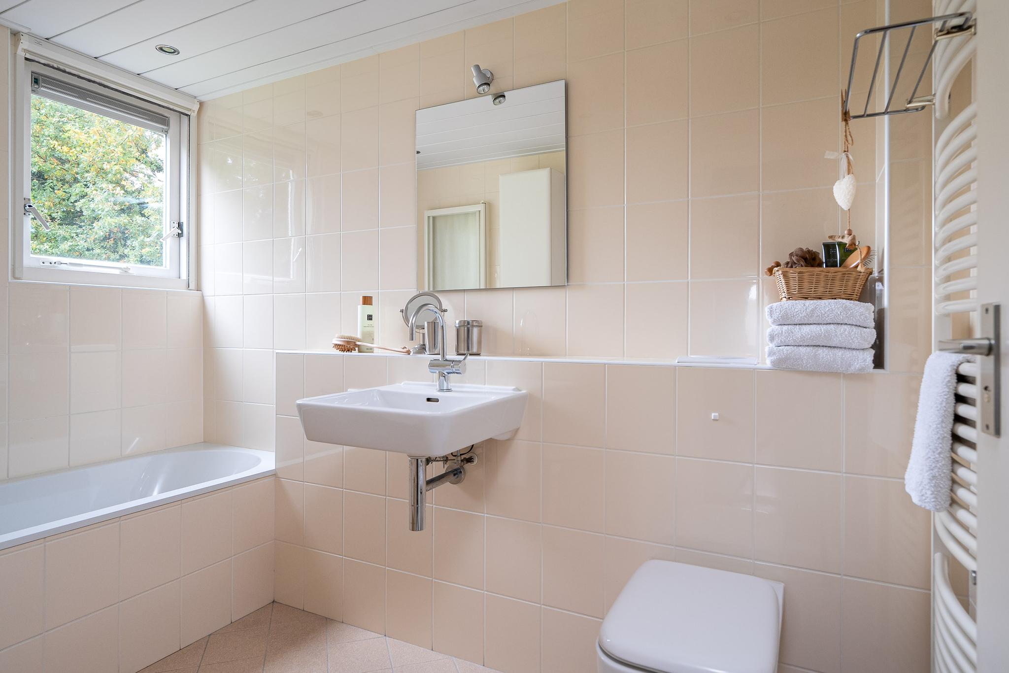 Op de eerste verdieping bevinden zich drie royale slaapkamers, elk voorzien van grote ramen die voor veel natuurlijk licht zorgen. De badkamer beschikt over een ligbad met douchewand, wastafel en een tweede toilet. In alle kamers zijn horren.