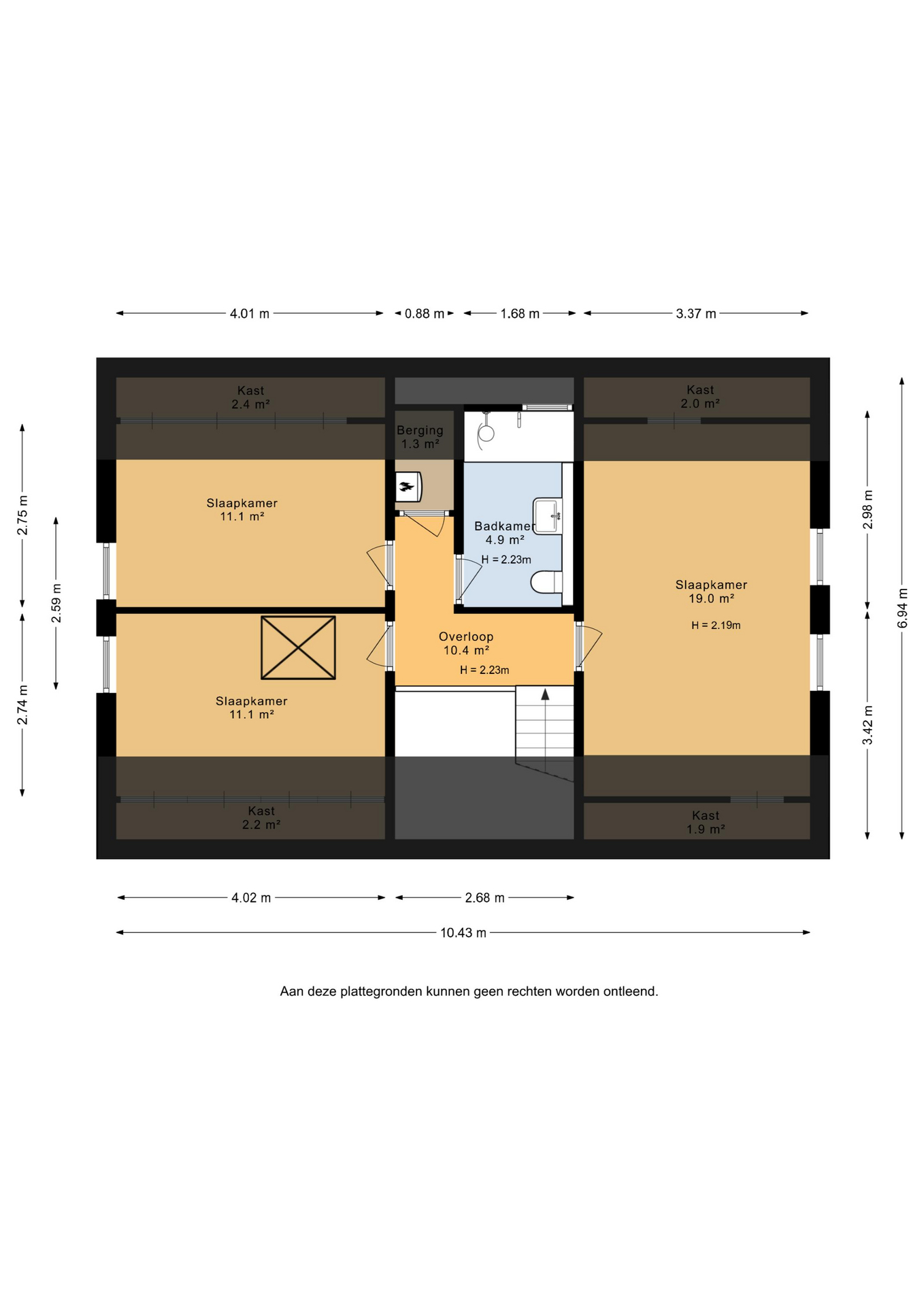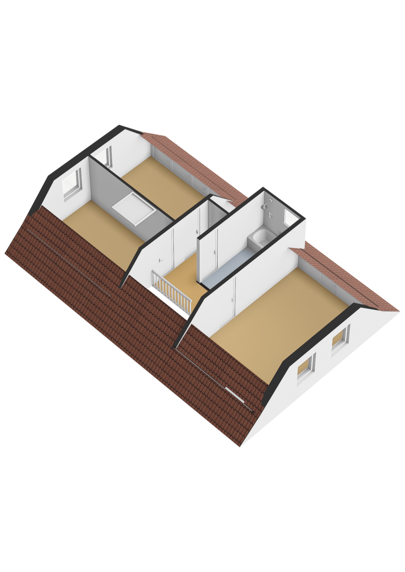 – Drie slaapkamers en een opberg zolder.