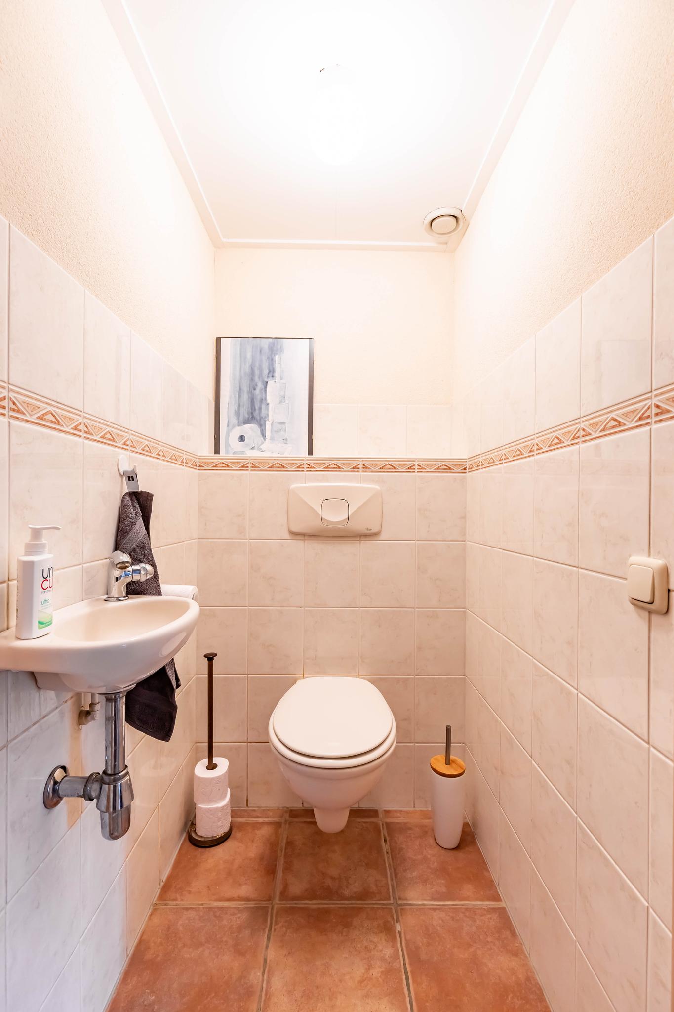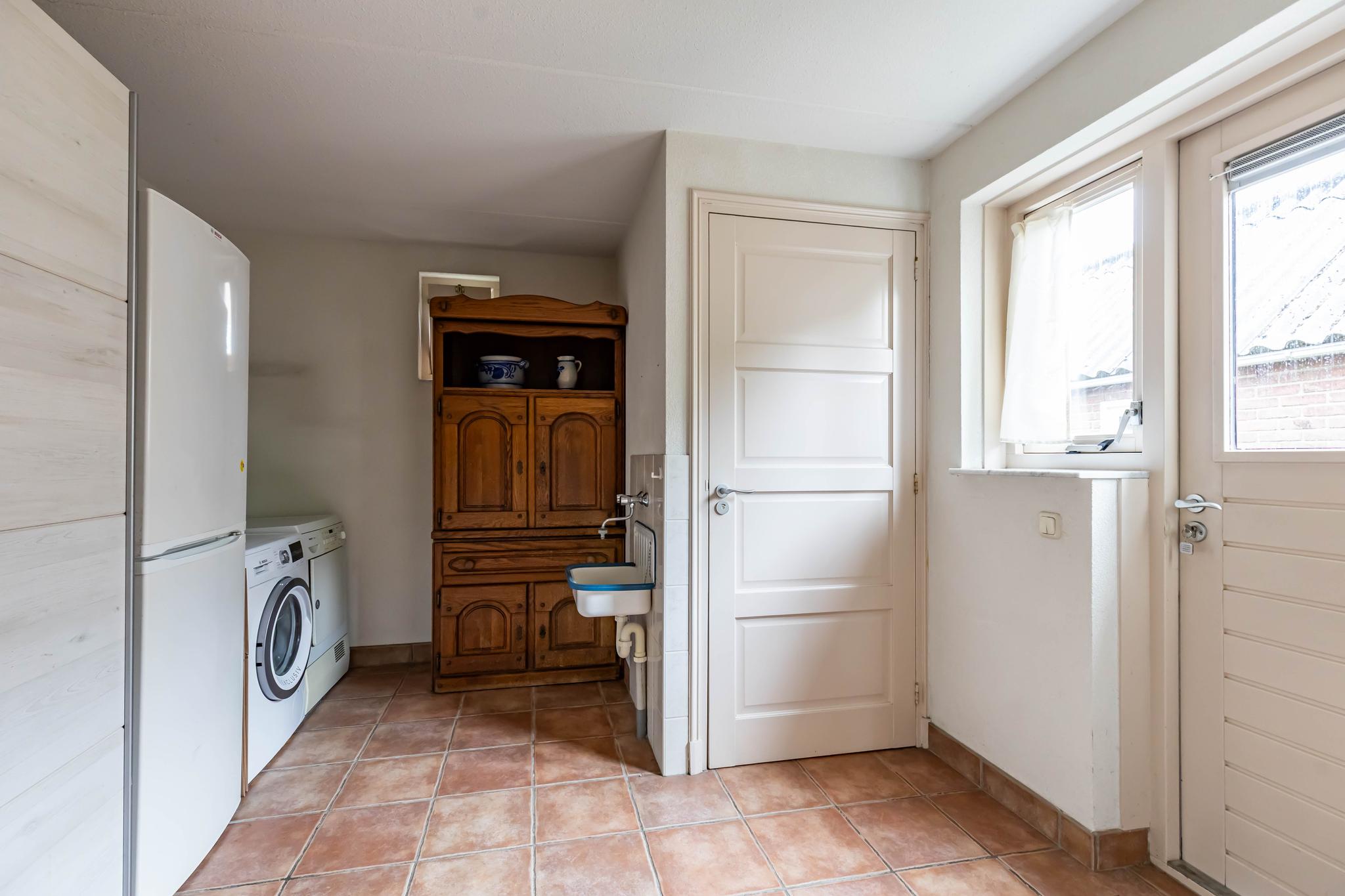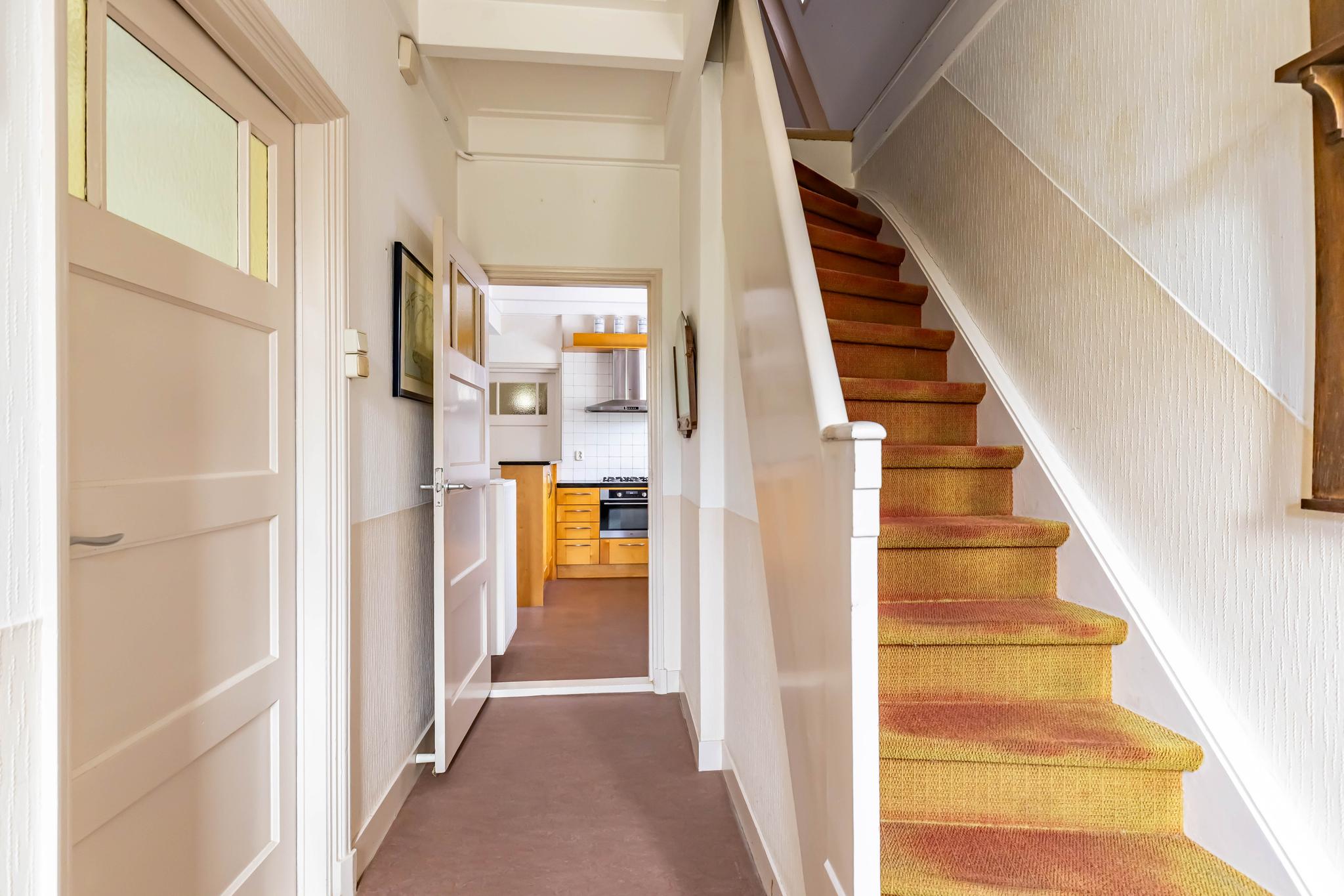 Entree/hal met trapopgang, meterkast, deur naar de woonkamer en keuken. De voorkamer van met erker en hoge plafonds straalt direct sfeer uit. Vanuit de woonkamer stap je via suite deuren in de ruime eetkeuken met zicht op de tuin. Aangrenzend bevindt zich de praktische bijkeuken met witgoedaansluitingen, toegang tot het toilet en een werkkast met CV-opstelling. In de aanbouw is een extra kamer/kantoor gerealiseerd – ideaal als werkplek, speelkamer of slaapkamer op de begane grond.