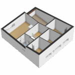 De overloop geeft toegang tot vier slaapkamers, 1 aan de voorzijde en 3 aan de achterzijde. De slaapkamers zijn praktisch ingedeeld en geschikt als hoofdslaapkamer, kinderkamers of werk-/hobbyruimte. De badkamer beschikt over een douche, tweede toilet en wastafel. Verder bevindt zich op deze verdieping een ruime inpandige berging van circa 10 m², ideaal voor opslag.