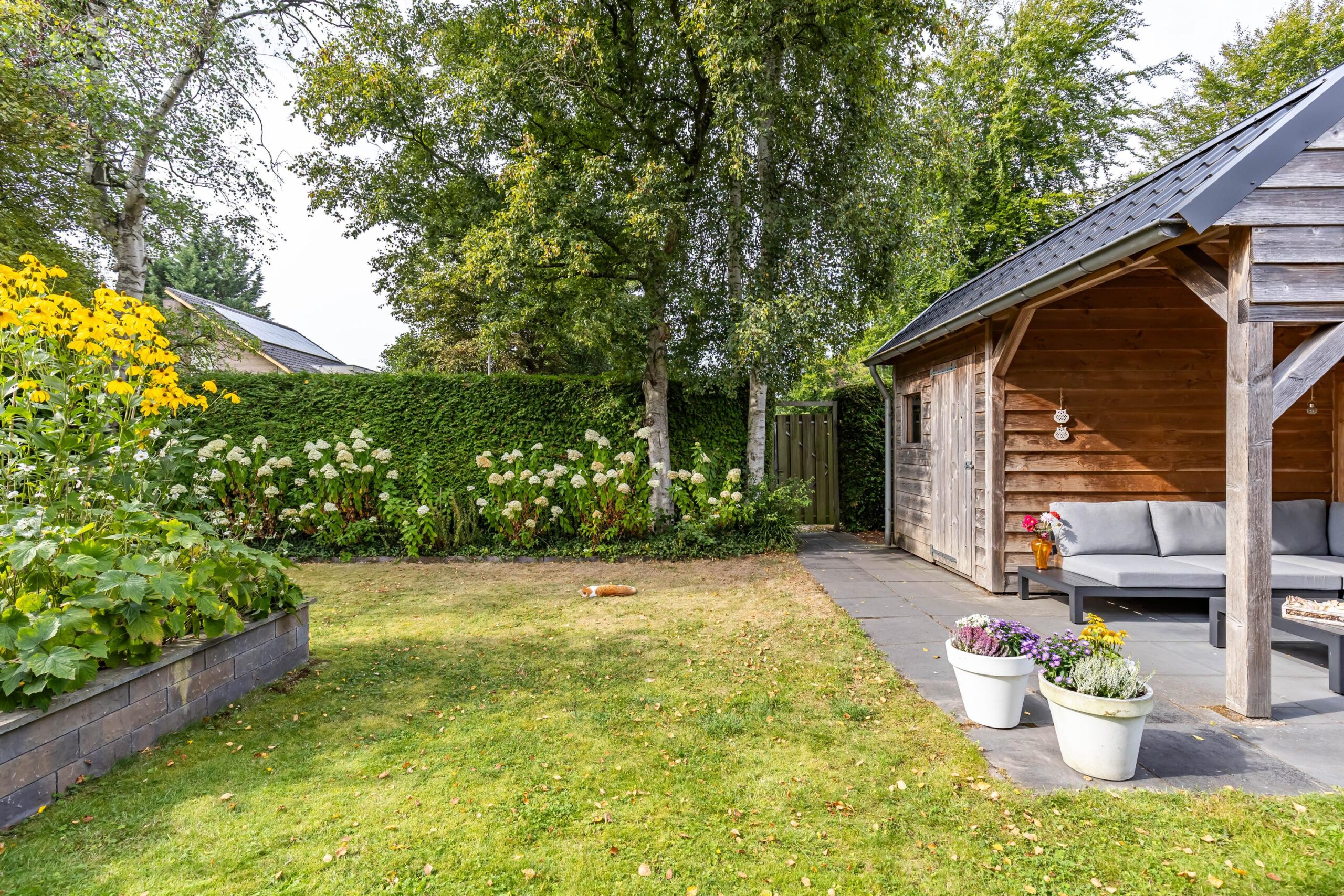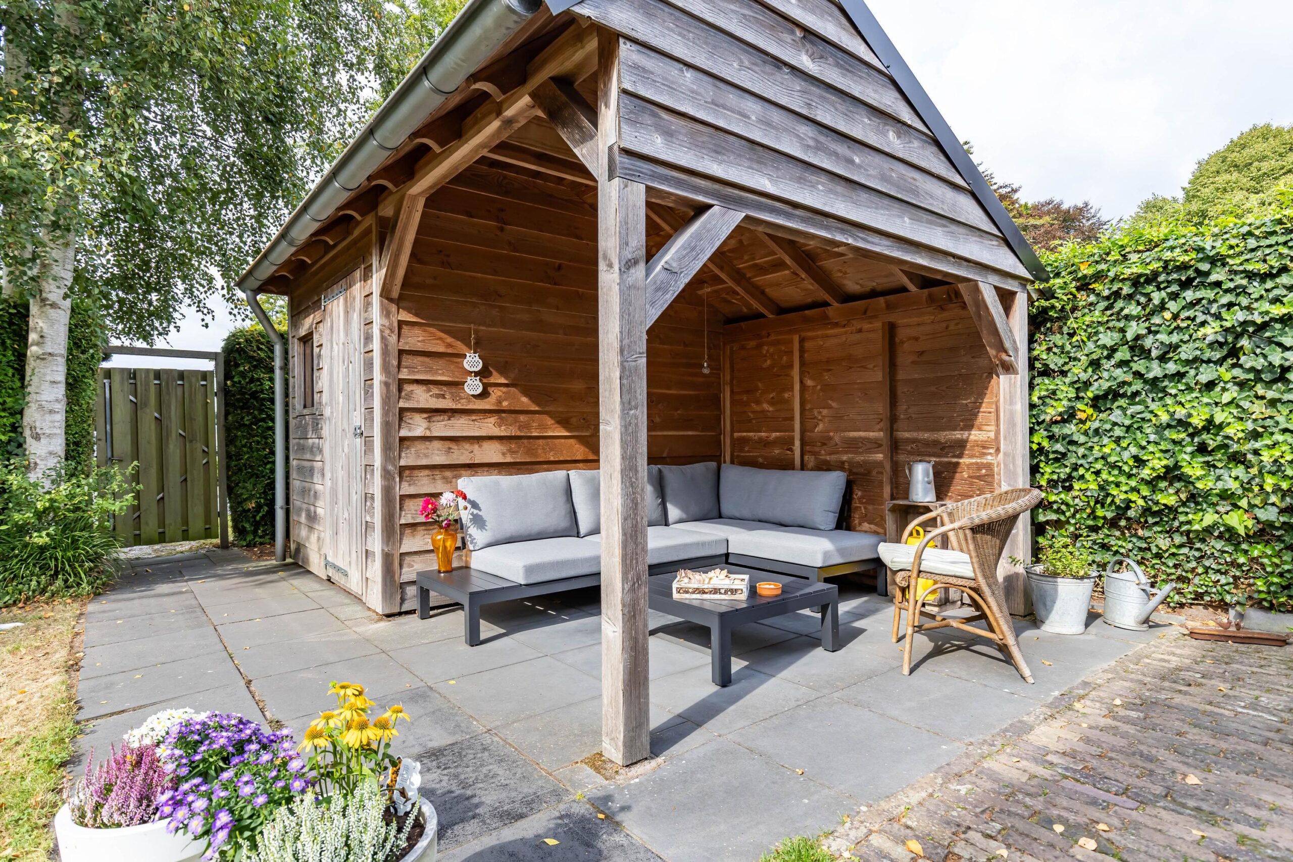 • Tuin rondom met houten overkapping en vrijstaande berging