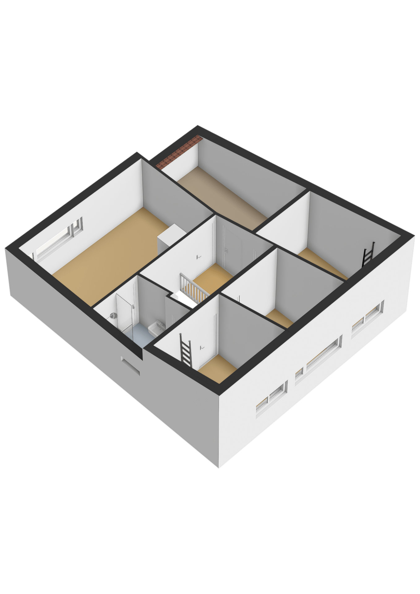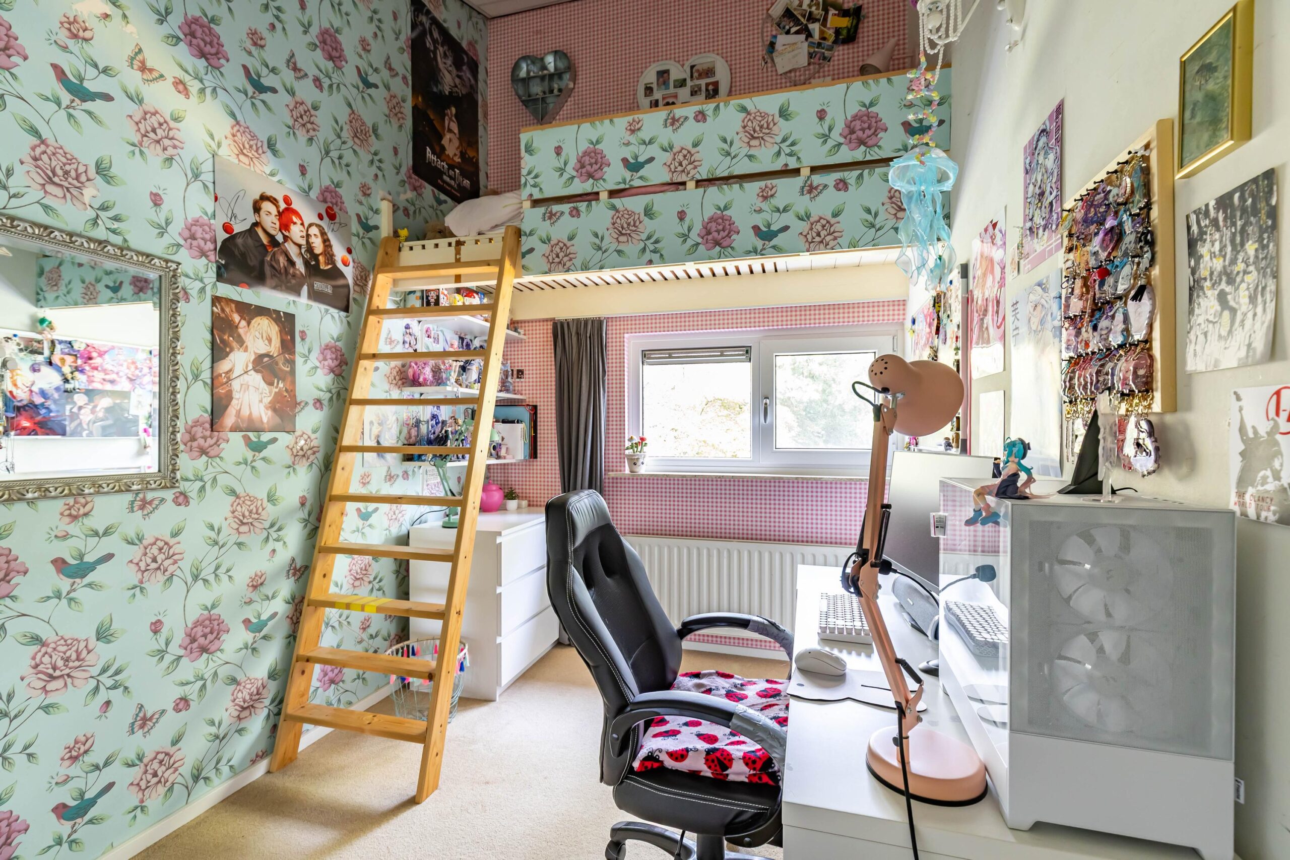 De overloop geeft toegang tot vier slaapkamers, 1 aan de voorzijde en 3 aan de achterzijde. De slaapkamers zijn praktisch ingedeeld en geschikt als hoofdslaapkamer, kinderkamers of werk-/hobbyruimte. De badkamer beschikt over een douche, tweede toilet en wastafel. Verder bevindt zich op deze verdieping een ruime inpandige berging van circa 10 m², ideaal voor opslag.