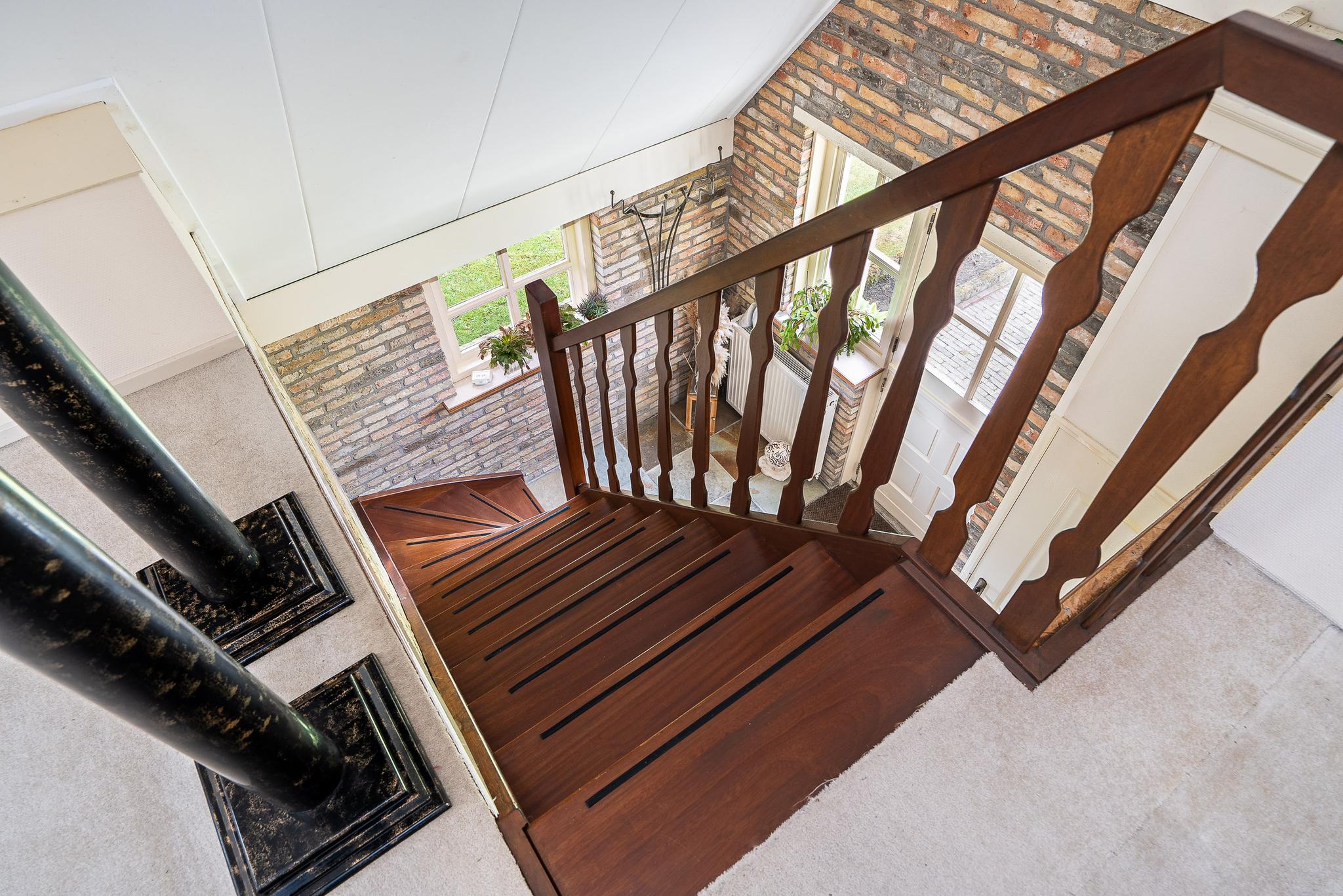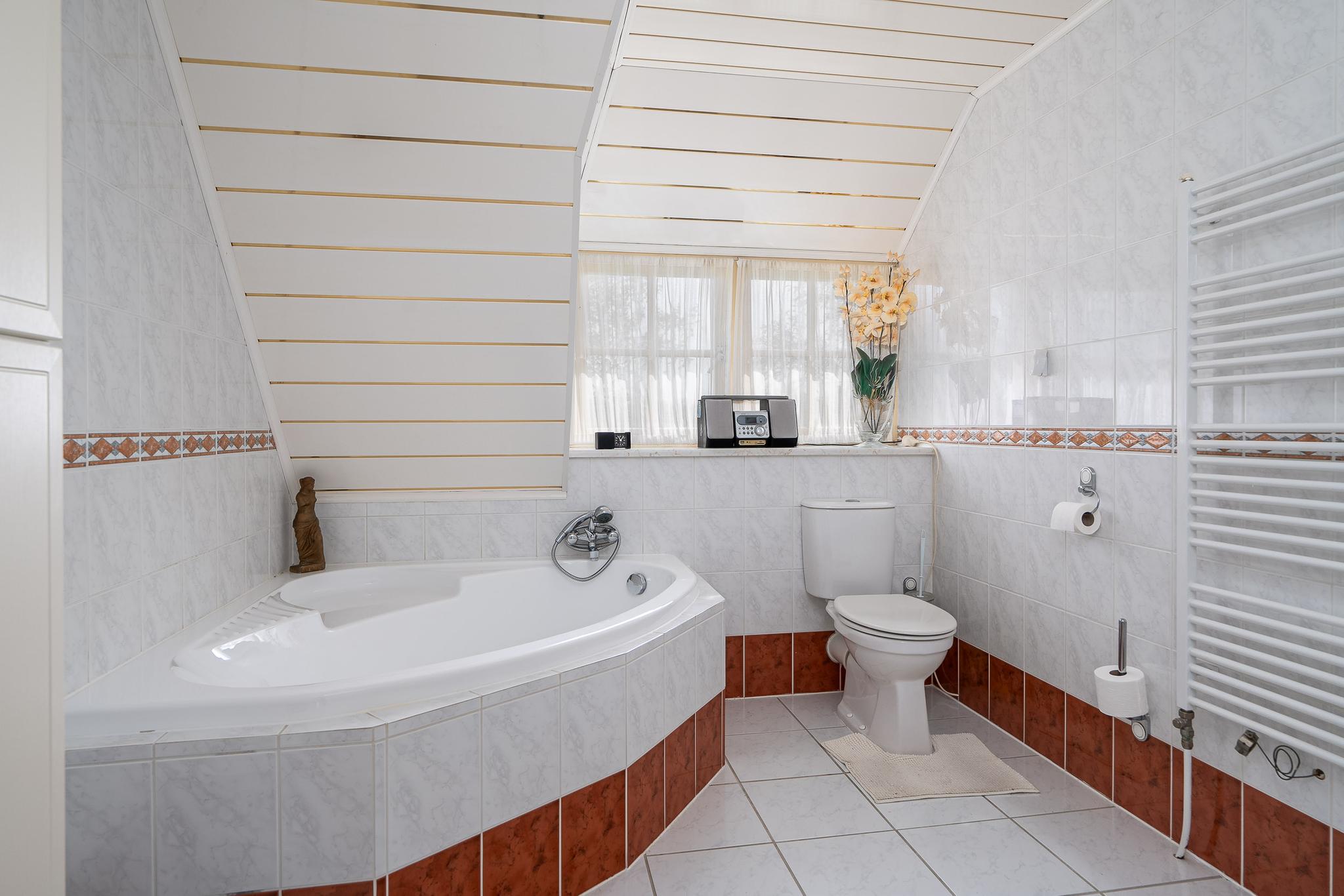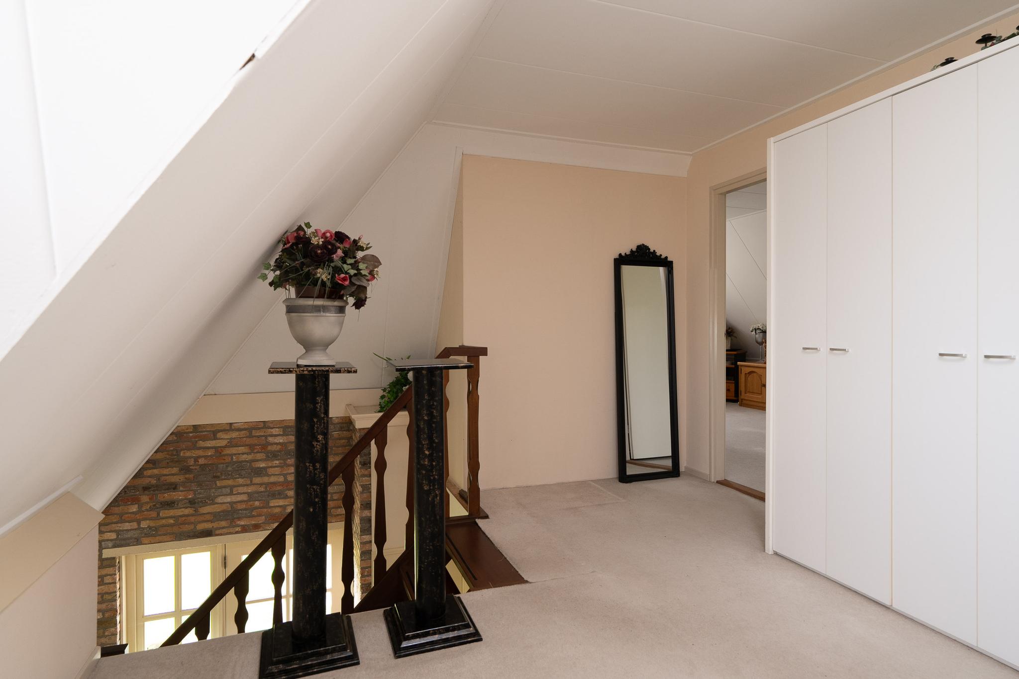De verdieping is ruim opgezet en voorzien van overloop, drie ruime slaapkamers en de badkamer met douchehoek, ligbad, tweede toilet en wastafel.