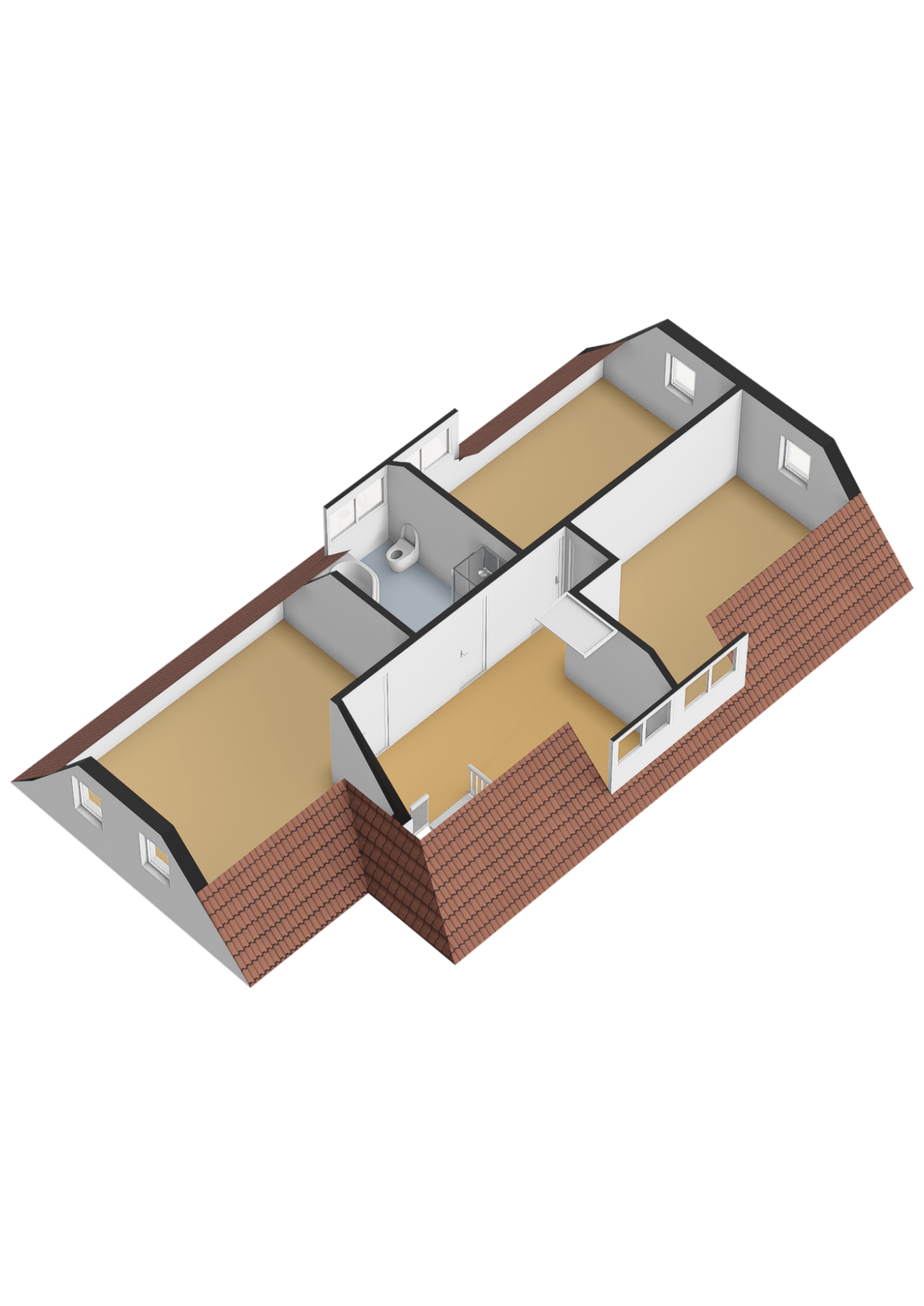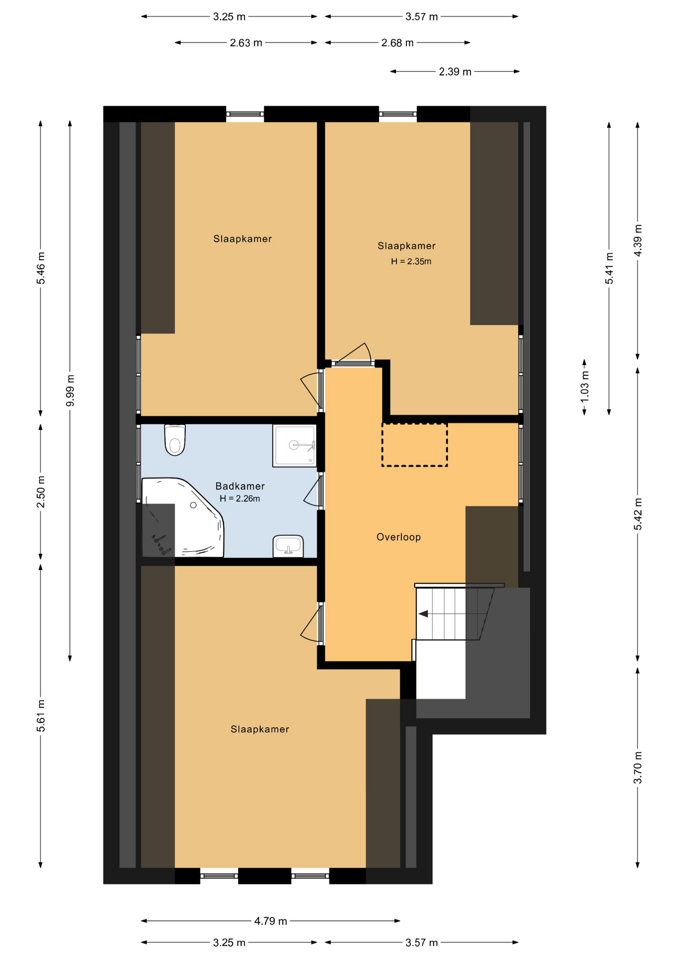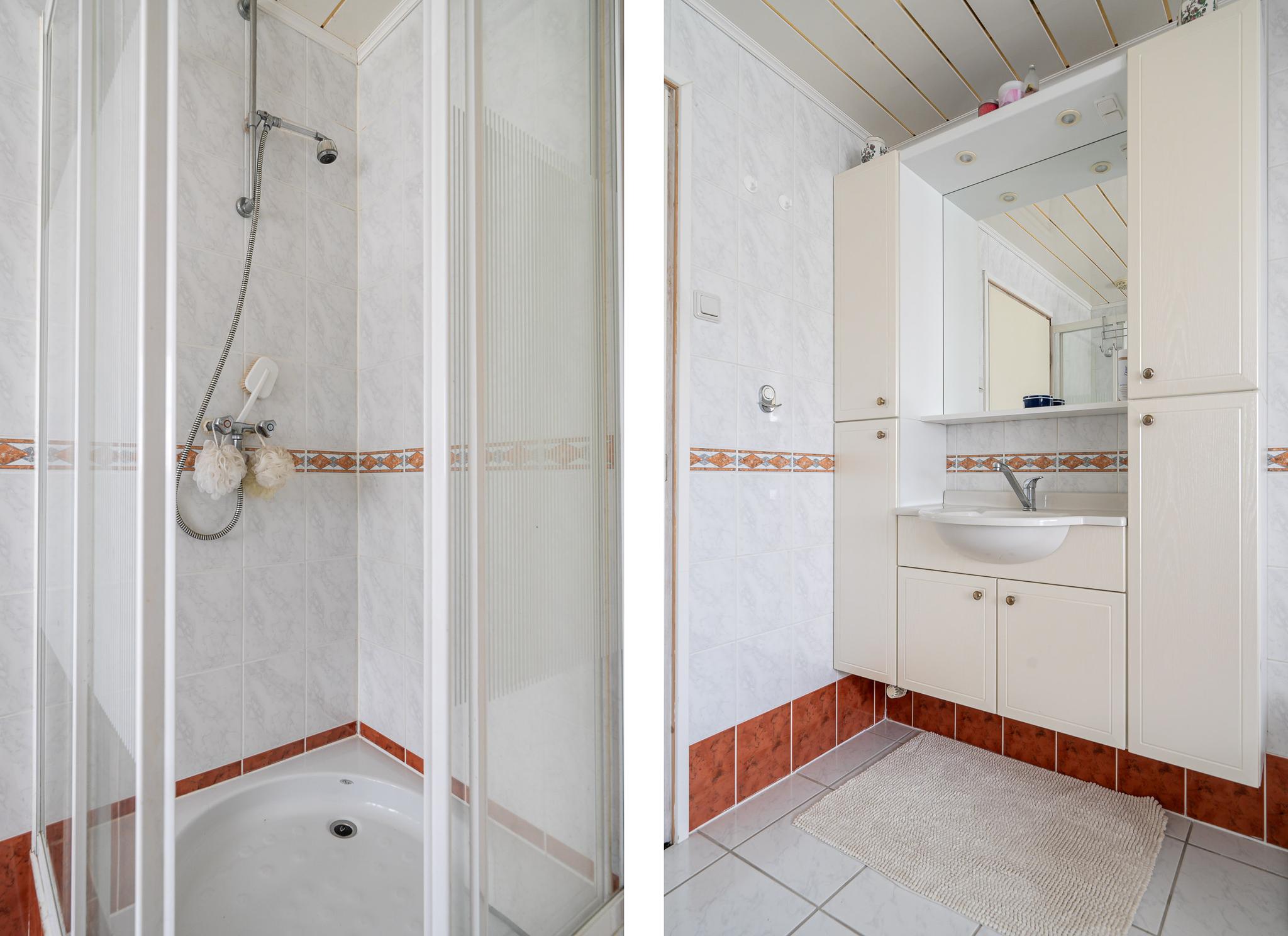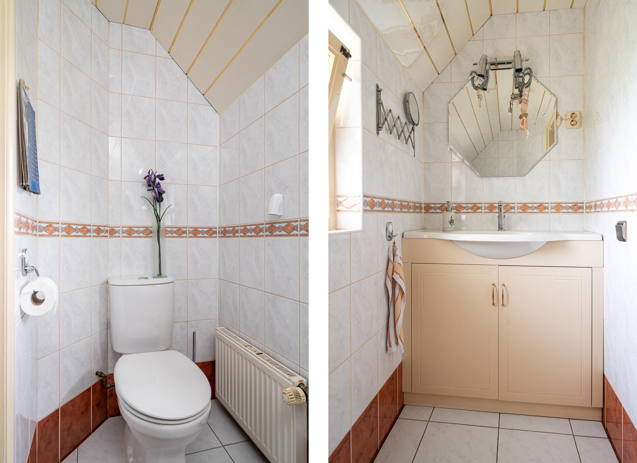 De verdieping is ruim opgezet en voorzien van overloop, drie ruime slaapkamers en de badkamer met douchehoek, ligbad, tweede toilet en wastafel.