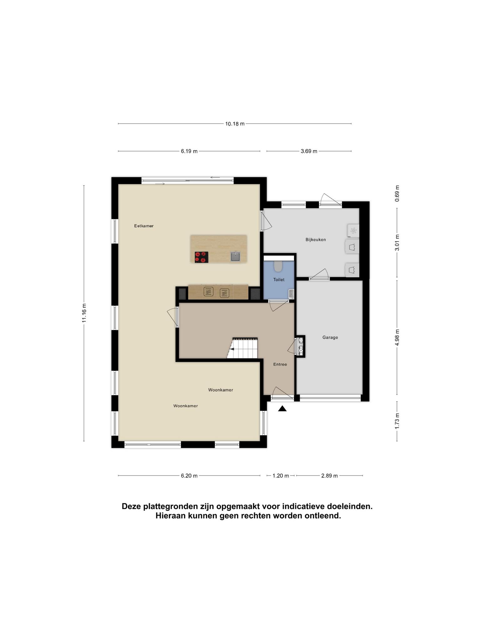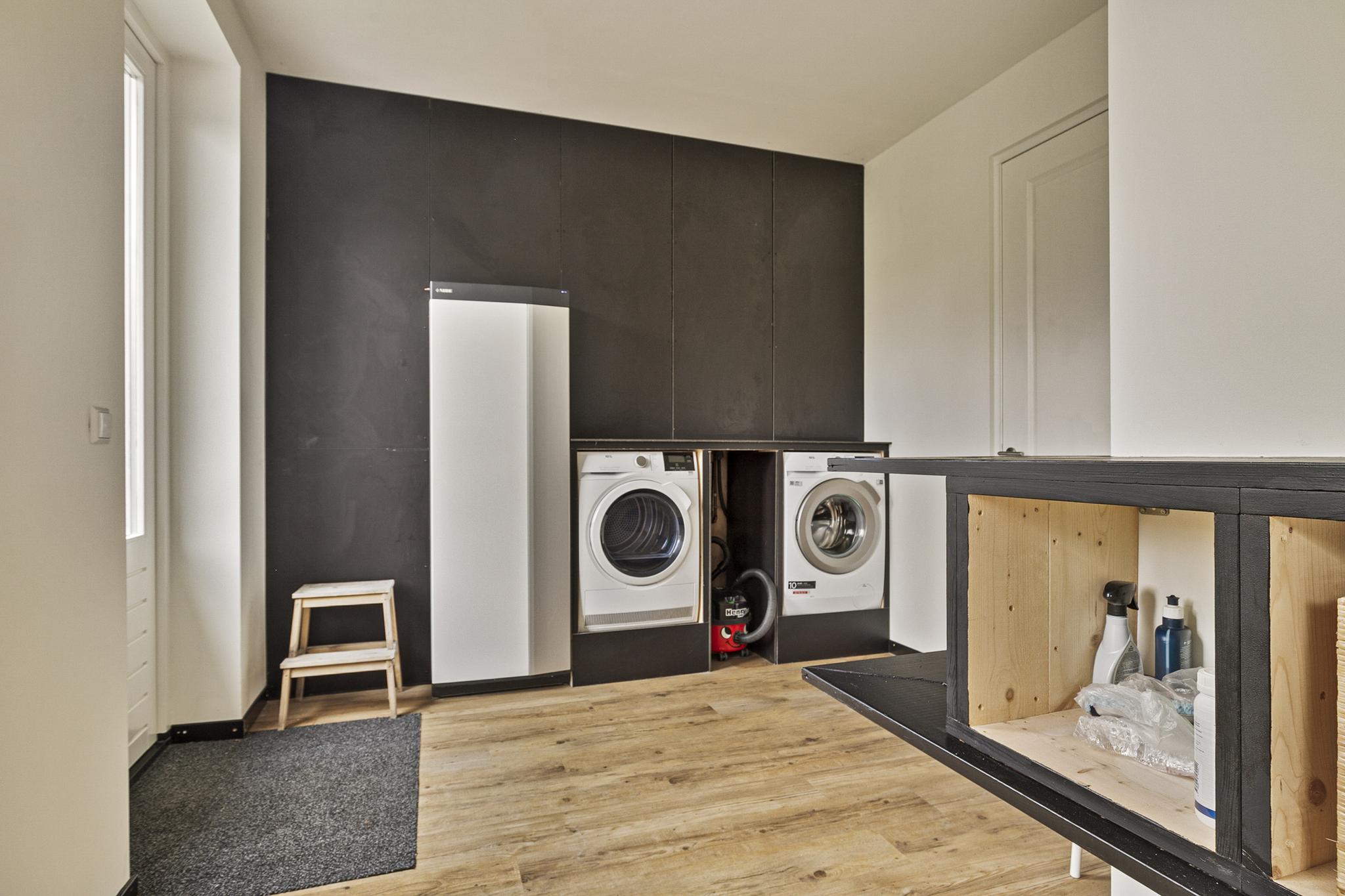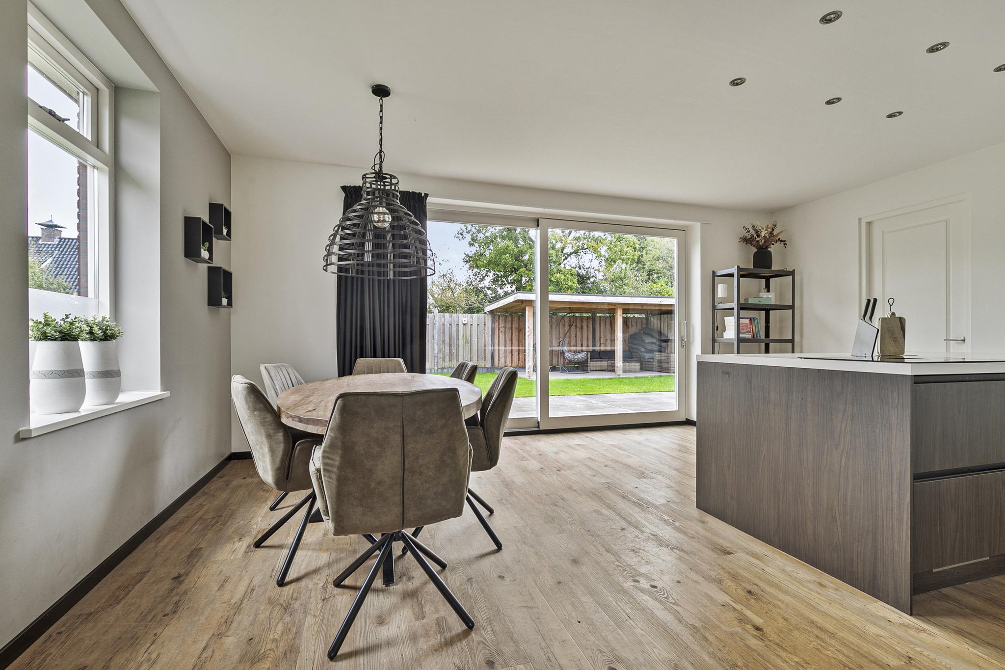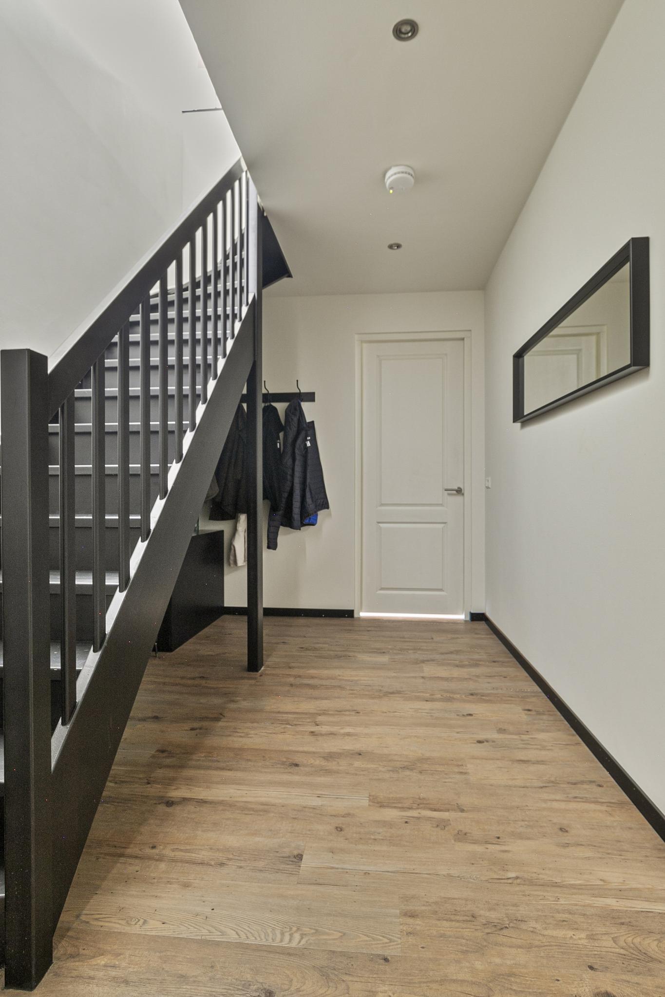 Indeling begane grond: Entree, ruime hal met toilet, meterkast en trapopgang, woonkamer met veel natuurlijk lichtinval, achterkamer/eetkamer met open leefkeuken en schuifpui naar de achtertuin, de keukenruimte voorzien van kookeiland met uitgebreide inbouwapparatuur waaronder een wijnkoeler, vanuit de keuken is de bijkeuken te bereiken met achter entree en toegang tot de garage.