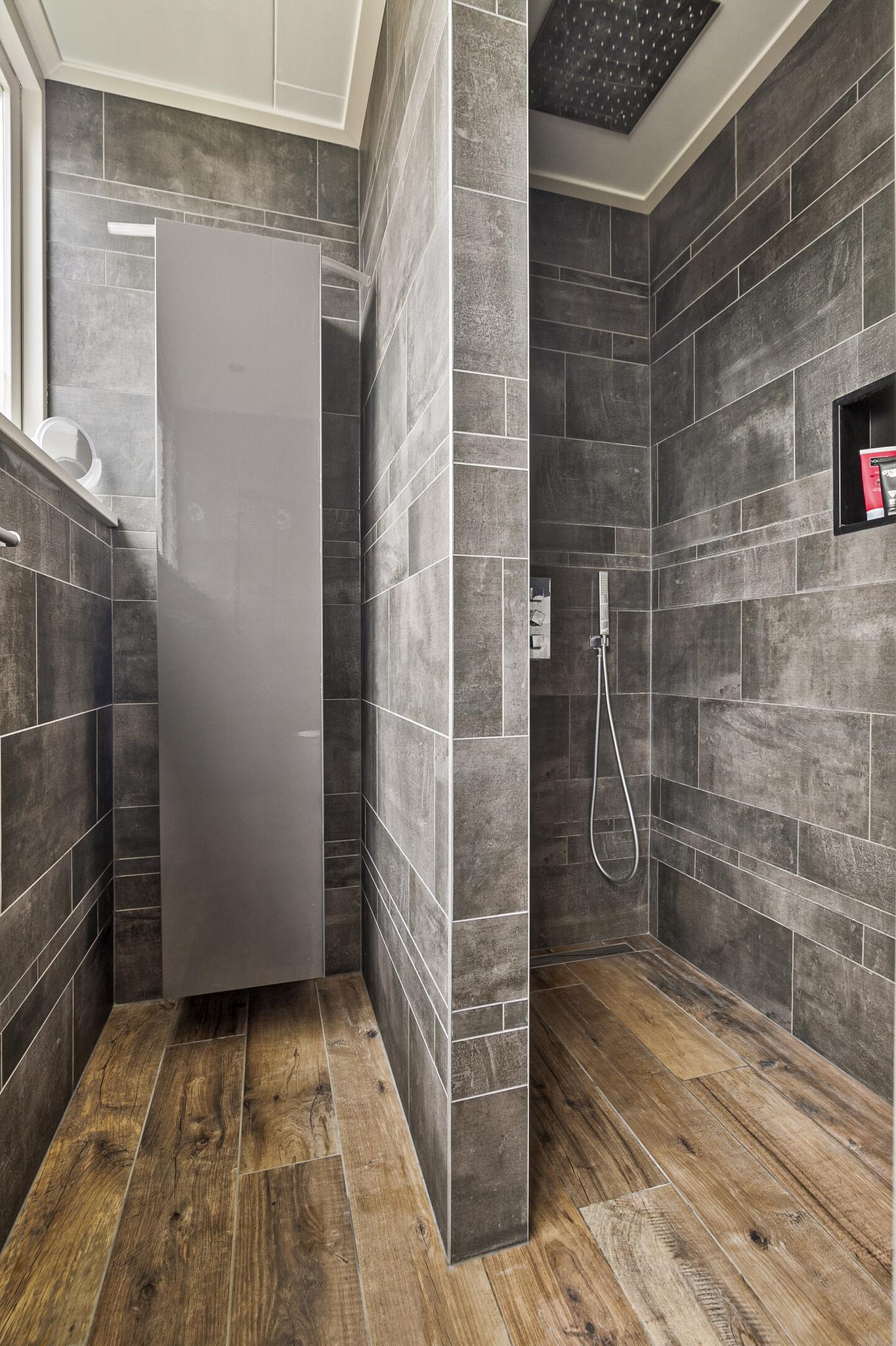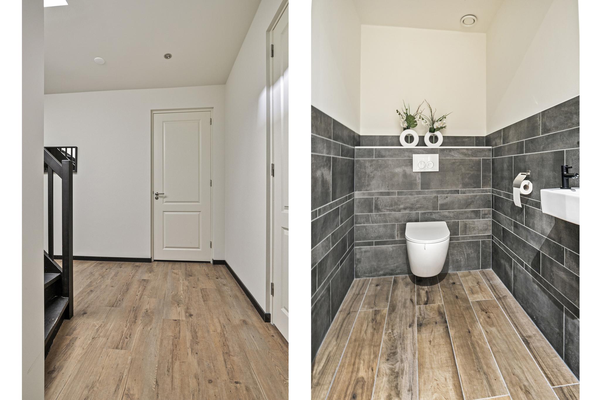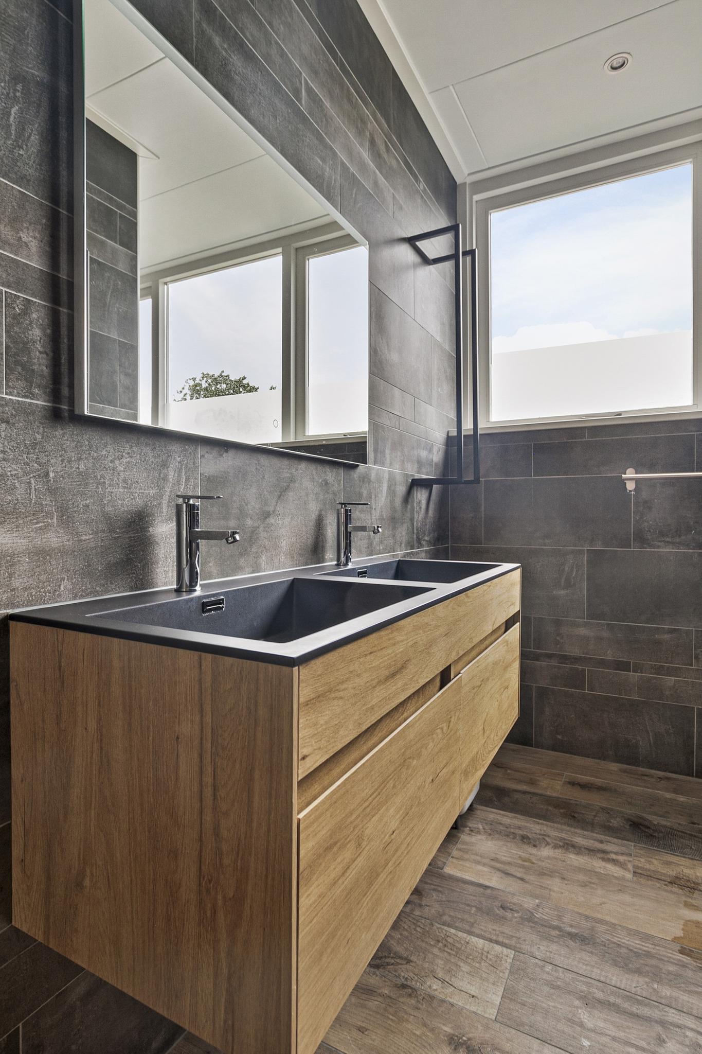 1e verdieping: Overloop, 4 slaapkamers (ouderslaapkamer met inloopkast), luxe en moderne badkamer met dubbele wastafel, inloopdouche en toilet.