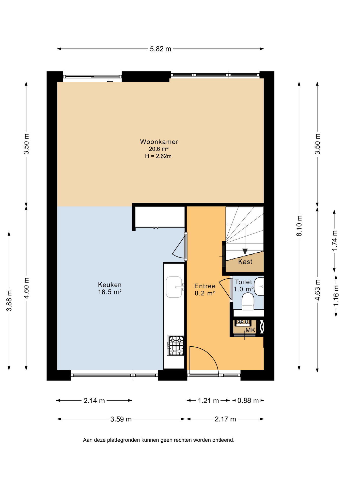 Deze informatie is door ons met de nodige zorgvuldigheid samengesteld, veelal aan de hand van de door verkoper aan ons ter hand gestelde gegevens en tekeningen. Onzerzijds wordt echter geen enkele aansprakelijkheid aanvaard voor enige onvolledigheid, onjuistheid of anderszins, dan wel de gevolgen daarvan. Dit geldt voor onder meer de opgegeven maten, oppervlakten, isolatie en ouderdom van technische installaties.